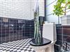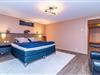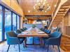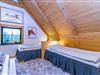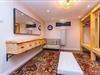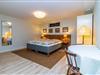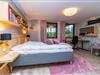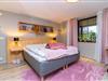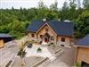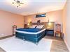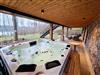 Feriehuset har et boligareal på ca. 320 m2 og opfylder alle ønsker. Lige efter man kommer ind i huset, befinder man sig i en stor og åben gang. Til venstre ligger hobby- og arbejdsværelset, til højre ligger det første badeværelse med brusebad og toilet. For enden af gangen kommer man ind i det store og lyse opholds-, spisestue- og køkkenområde. Det store køkken med køkkenø er fremragende udstyret med alt hvad hjertet begære. Det store spisebord har plads til 10 personer. I stuen er der en stor hjørnesofa. Der er også et tv og en pejs. Den store glasfront med skydedøre fører ud til terrassen. Ved siden af spiseområdet fører en trappe op til hemsen med en dobbeltseng og to enkeltsenge. Fra entreen er der også adgang til underetagen. Der er yderligere tre soveværelser med dobbeltsenge, et walk-in closet og et bryggers med vaskemaskine og tørretumbler. Hvert soveværelse har eget badeværelse med brusebad og toilet. Det store soveværelse har desuden en sauna og et stort dobbeltbrusebad.