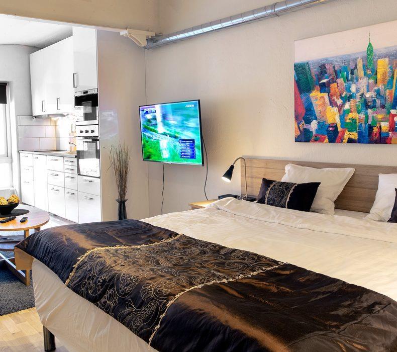 Denne ferielejlighed kaldes SUPERIOR STUDIO APARTMENT og er den optimale feriebolig for f.eks. parret med 1 barn. Der er både en enkeltseng og en stor dobbeltseng af skøn kvalitet, som gør hver morgen er fuld af energi efter en god nats søvn. Lejligheden har et boligareal på 34 m2 med veludstyret køkken og god spiseplads. Her er både vaskemaskine og tørretumbler.