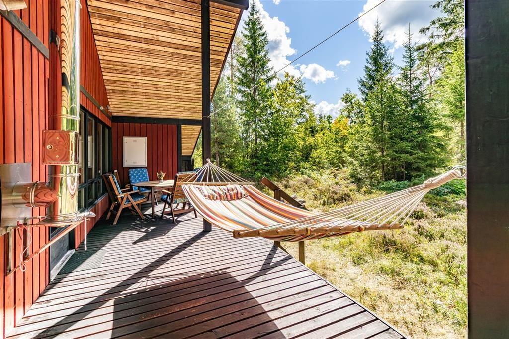 Sommerhus i Karlskrona, Sydsverige, med plads til 6 voksne. Der er en hyggelig indretning med bl.a. brændeovn.