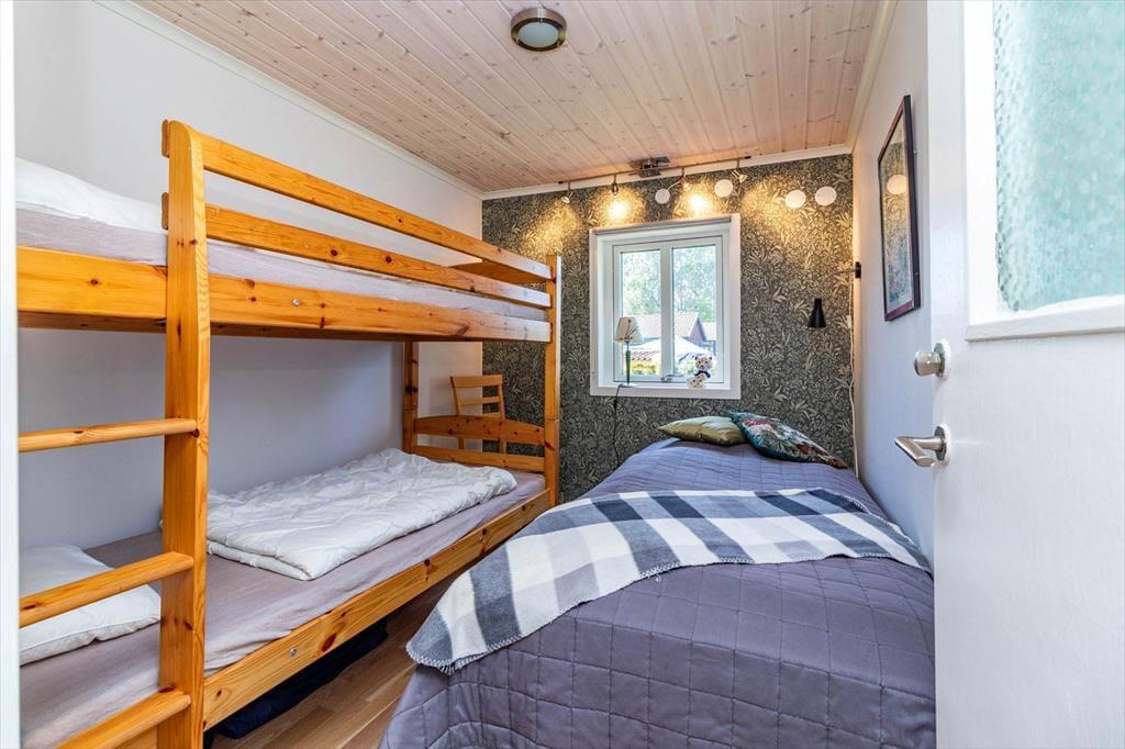 Feriehuset „Skärgård“ tilbyder ca. 72 m² med plads til maks. 5 personer. Tre soveværelser står til rådighed: et værelse med dobbeltseng, et andet med en enkeltseng og en køjeseng samt et åbent soveområde med enkeltseng, som fungerer som gennemgangsværelse til det andet soveværelse.