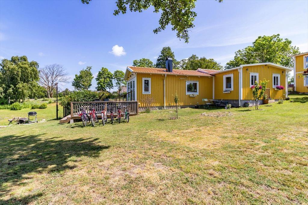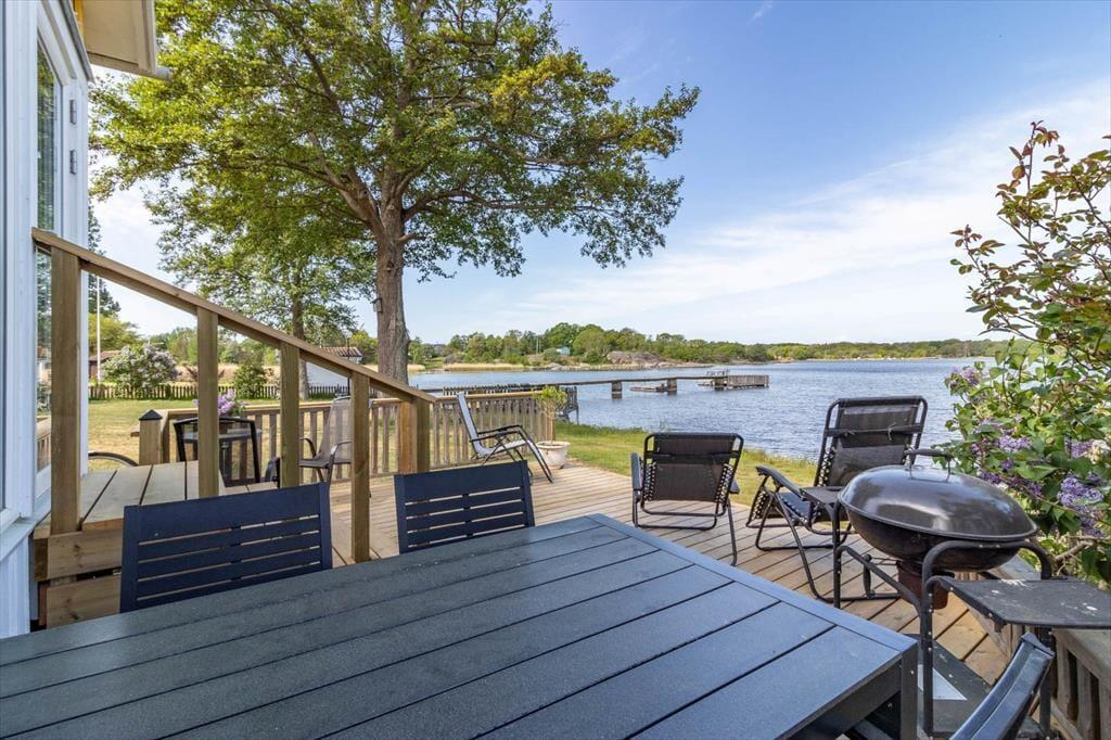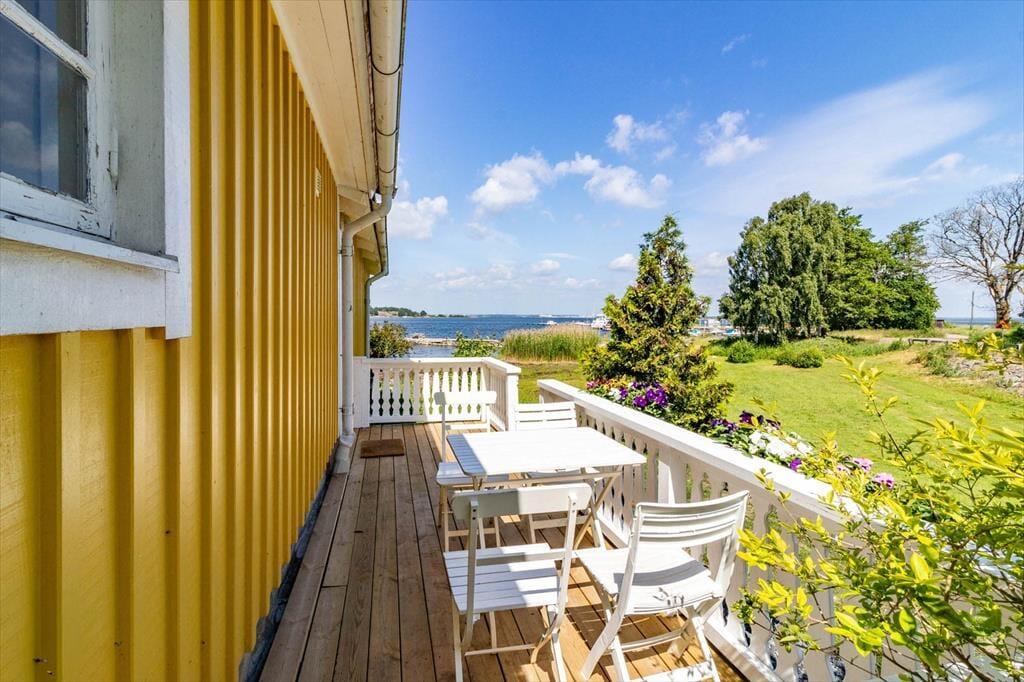 Feriehuset „Skärgård“ ligger malerisk på skærgårdsøen Sturkö i Karlskronas skærgård i regionen Blekinge, på en fælles grund med feriehuset „Sturkö“ (BLE837). Takket være vejforbindelsen til fastlandet kan du nemt komme hertil i bil. Kystbyen Karlskrona med sine mange indkøbsmuligheder og kulturelle tilbud ligger ca. 25 km væk. Kun ca. 220 m fra huset finder du den lille havn „Bredavik brygga“, hvor du også kan ankomme med en mindre båd. Vandet nås på få skridt, og en lille badeplads ligger ca. 2 minutters gang væk. En officiel badeplads ligger ca. 4 km mod syd. Ønsker du at nyde naturen, finder du i den sydlige del af øen naturreservatet „Uttorp“ med lange vandrestier. En dagligvarebutik ligger kun ca. 1 km væk, så du kan nemt få fat i det nødvendige.