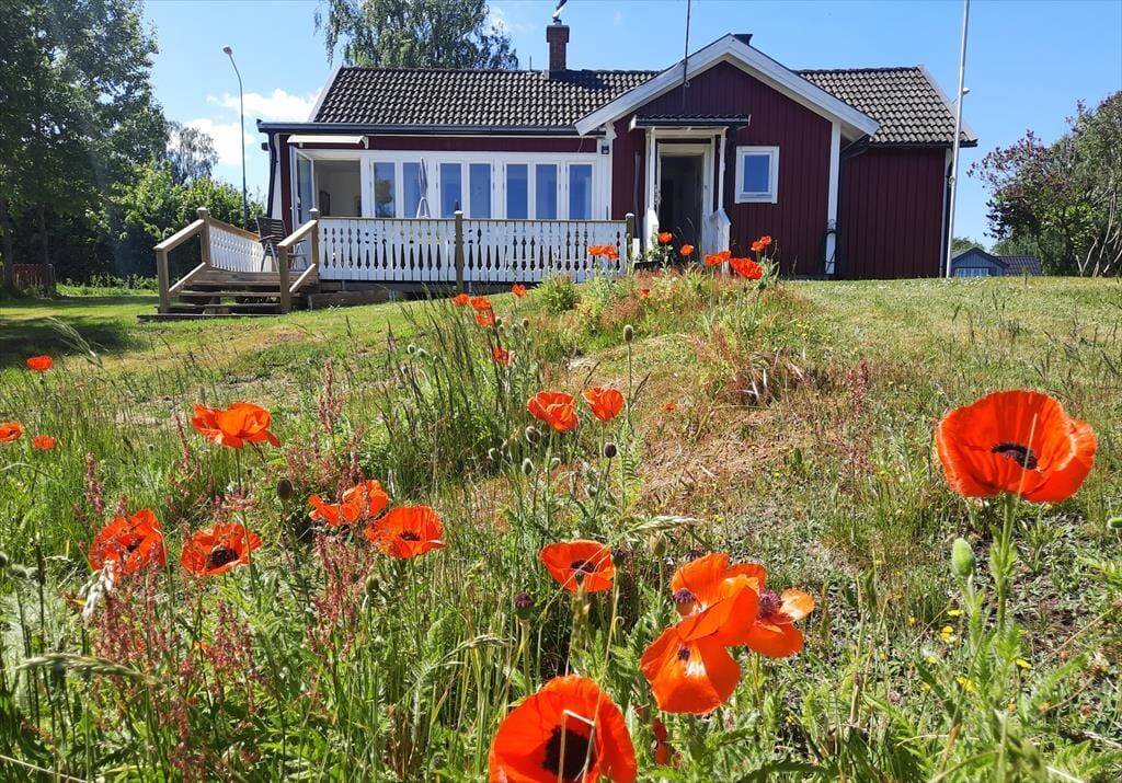 Sommerhus i Karlskrona, Sydsverige, med plads til 5 voksne og 2 husdyr. Der er en hyggelig indretning med bl.a. brændeovn, og du finder desuden vaskemaskine, opvaskemaskine og tørretumbler i boligen.