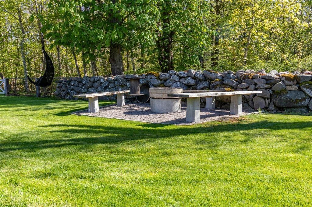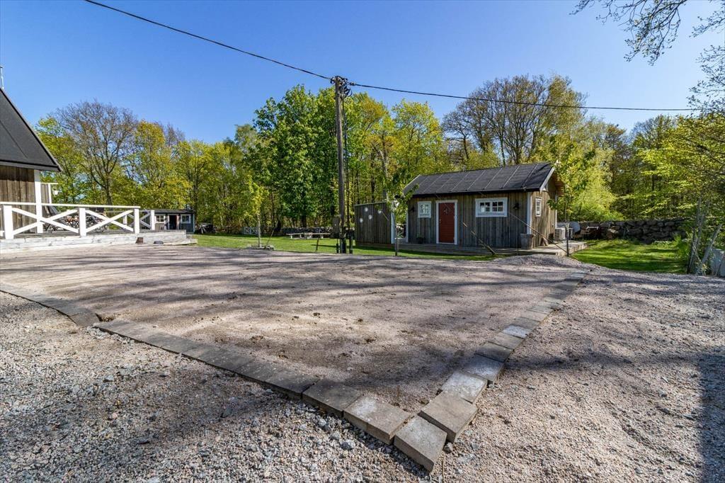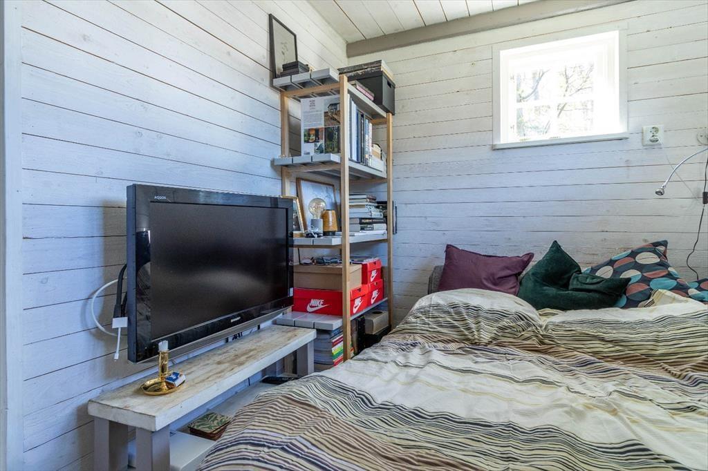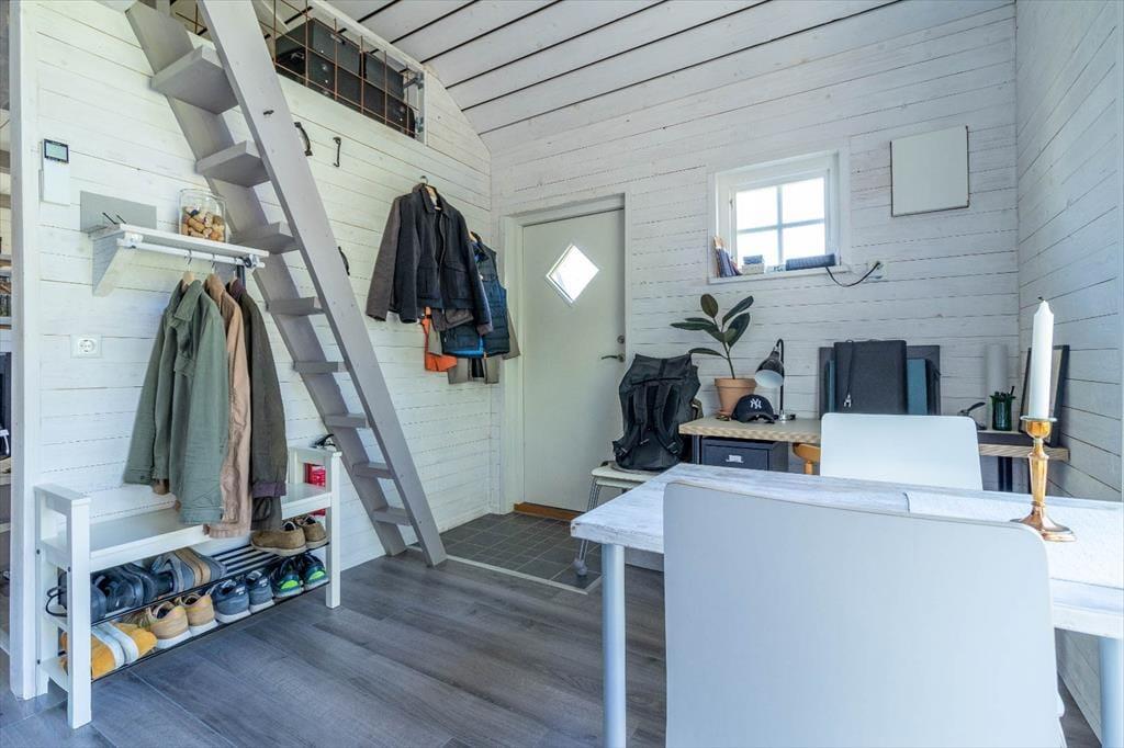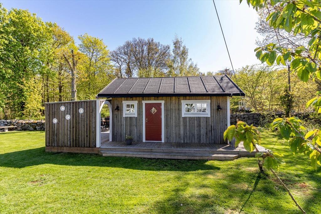 Boligen er på 36 m² og ligger på en 2.000 m² stor grund, hvor der bl.a. er gynge, sandkasse og trampolin.