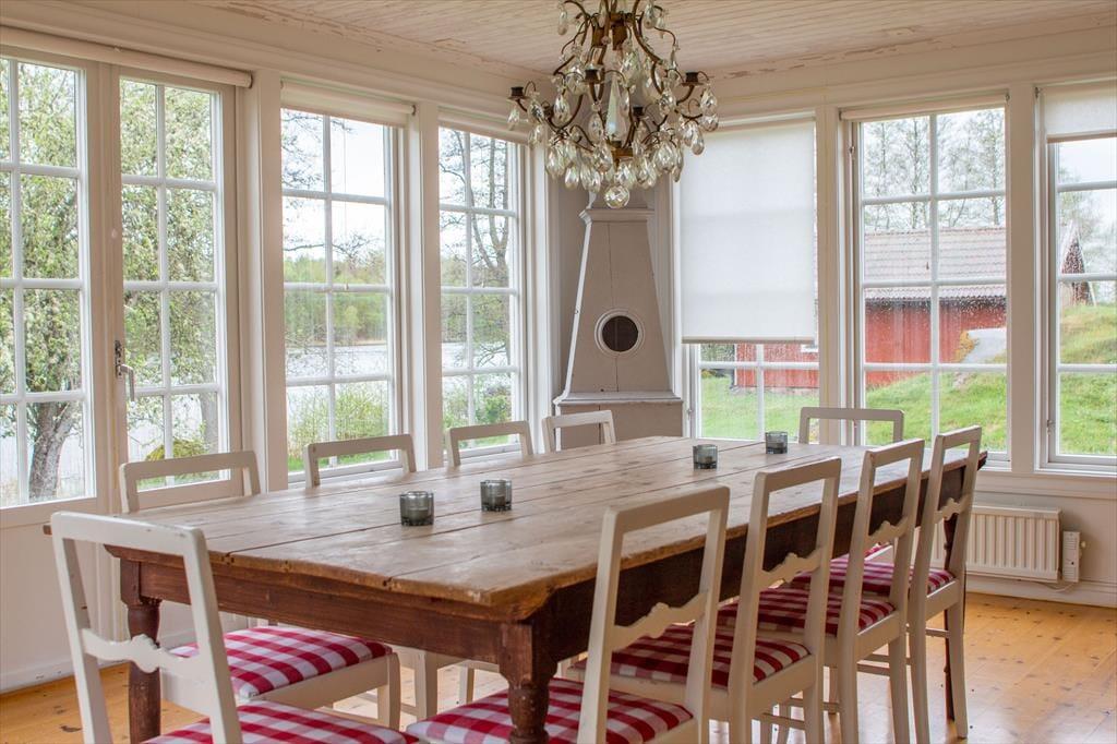 Udendørs venter en veranda med havemøbler, en grill, en stor leje- og liggeplæne – og selvfølgelig din egen robåd samt kano. Ønskes det, kan en elmotor stilles til rådighed efter aftale. Helt nede ved vandet ligger desuden et sauna-hus med brændefyr – for ægte svenske øjeblikke.