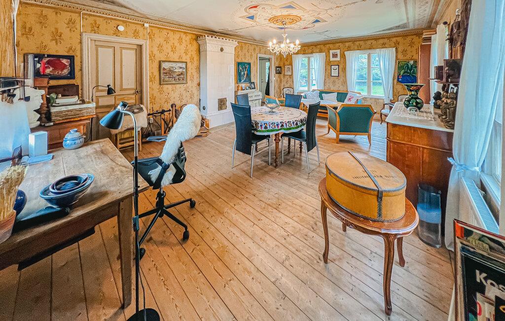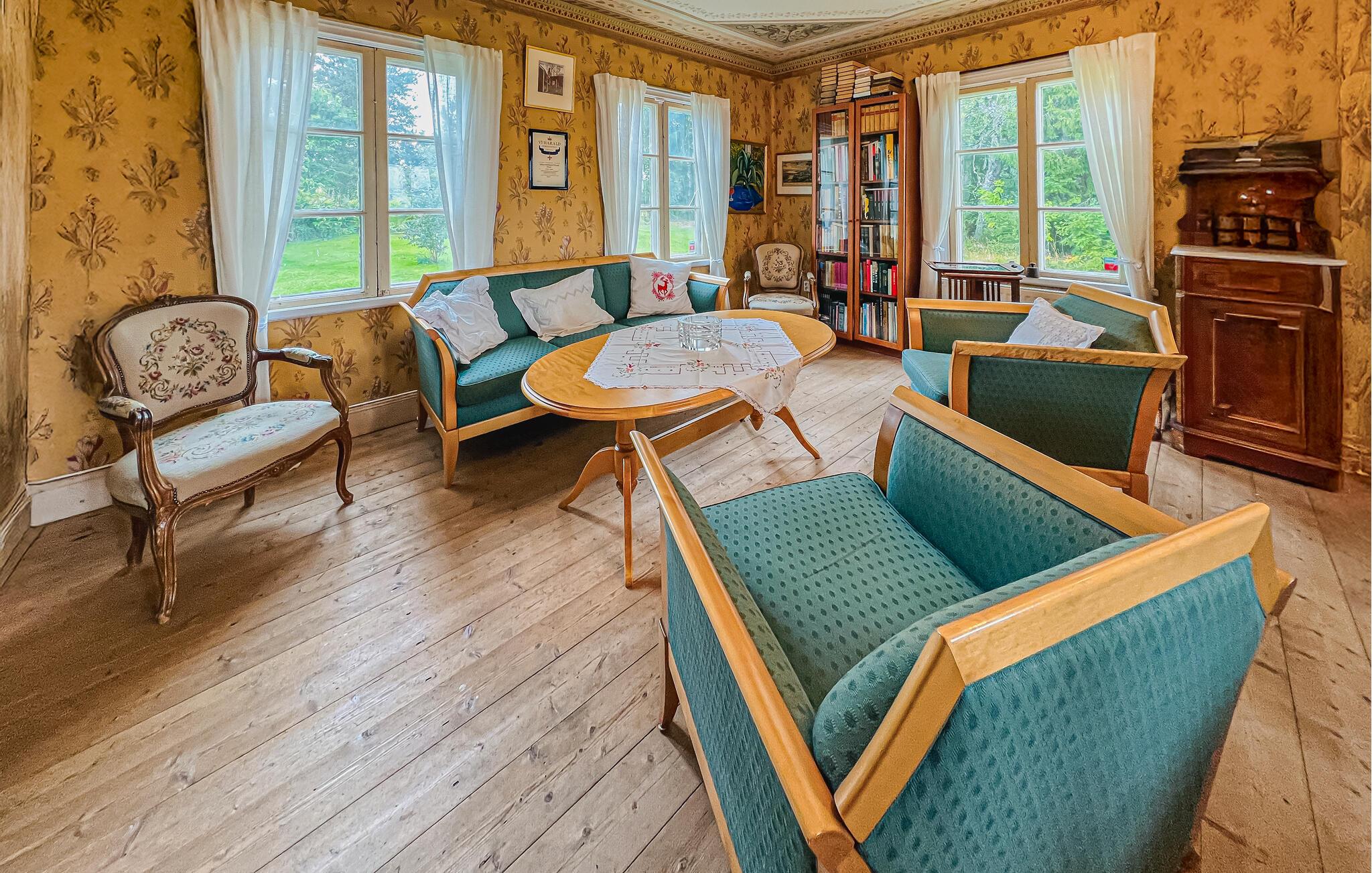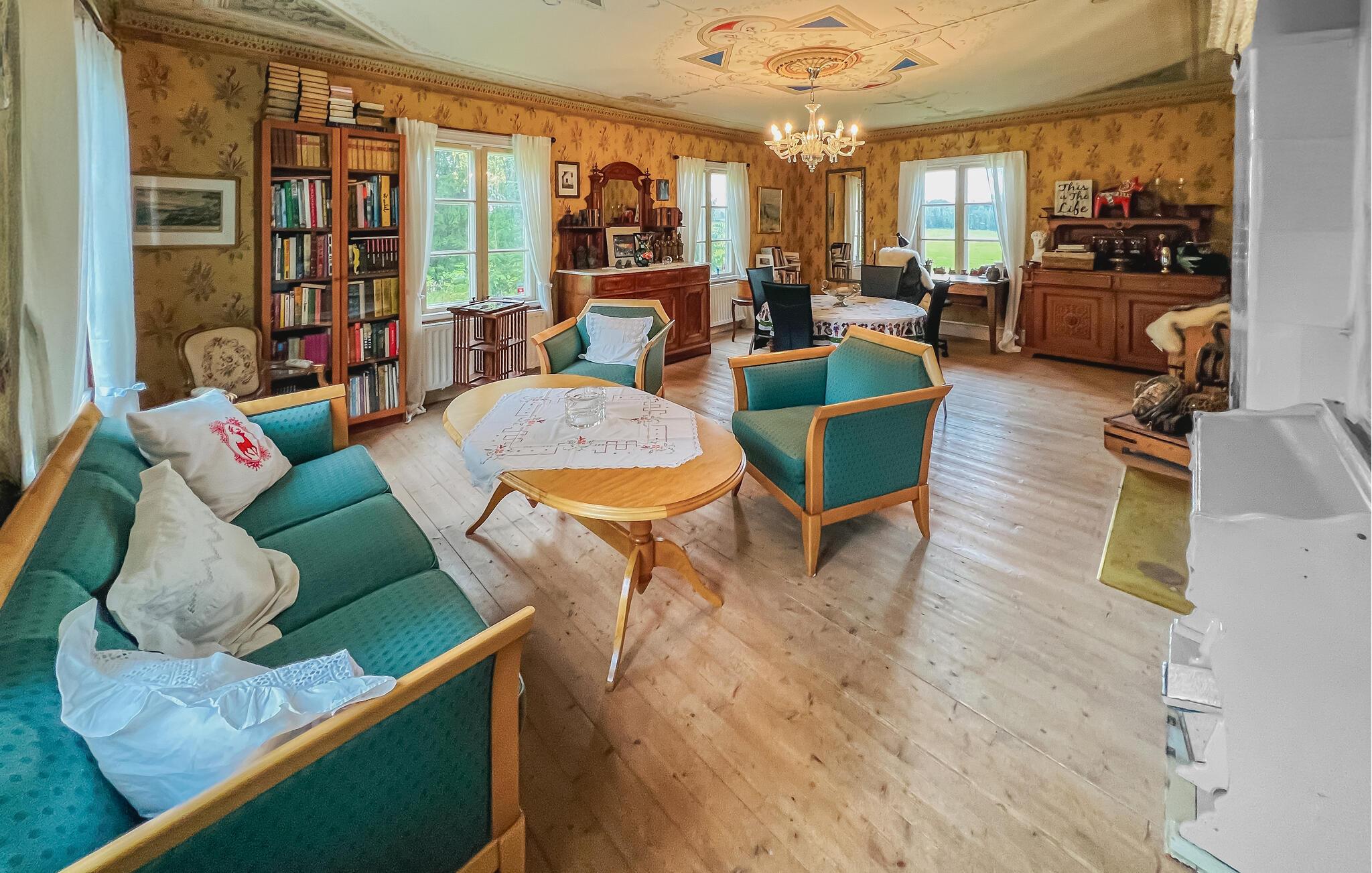 Bliv betaget af det smukke interiør i dette rummelige feriehus. Her kan I spise, lege og slappe af i en hyggelig atmosfære med nostalgisk charme. Glæd jer til harmoniske måltider og muntre spilleaftener med familien, forkæl jer selv med afslappende øjeblikke i saunaen og drag fordel af de mange indbydende steder at læse eller snakke.
