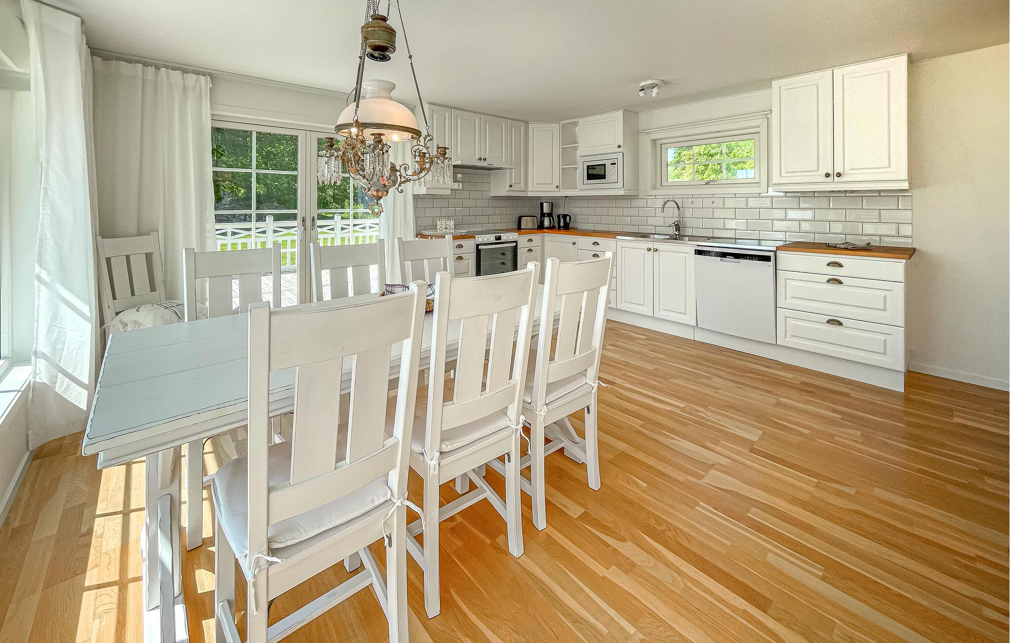 Velkommen til dette fantastiske hus, der ligger på en stor og dejlig rund midt i den smukke natur, og hvor der venter jer en allelunde skøn ferie med familien. Huset er nydeligt indrettet, og stuen får fine lysindfald gennem de sprossede vinduer, der samtidig giver en dejlig udsigt til Frisjön. Lad en herlig feriedag gå på hæld med en lækker aftensmad, lad blikkene vandre over søen og sæt jer godt til rette i sofaen med en god film, mens ilden knitrer i brændeovnen.