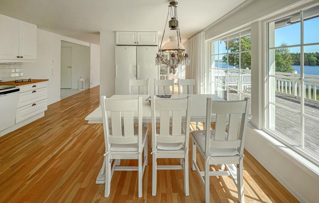 Udeområdet er dog husets perle. Den kæmpestore grund går helt ned til søen, hvor I får jeres helt egen strand til friske dukkerter og solbadning. Prøv lykken med fiskestangen og fang en lækker fisk med hjem til grillen, og rund af med et godt glas vin under aftensolen.