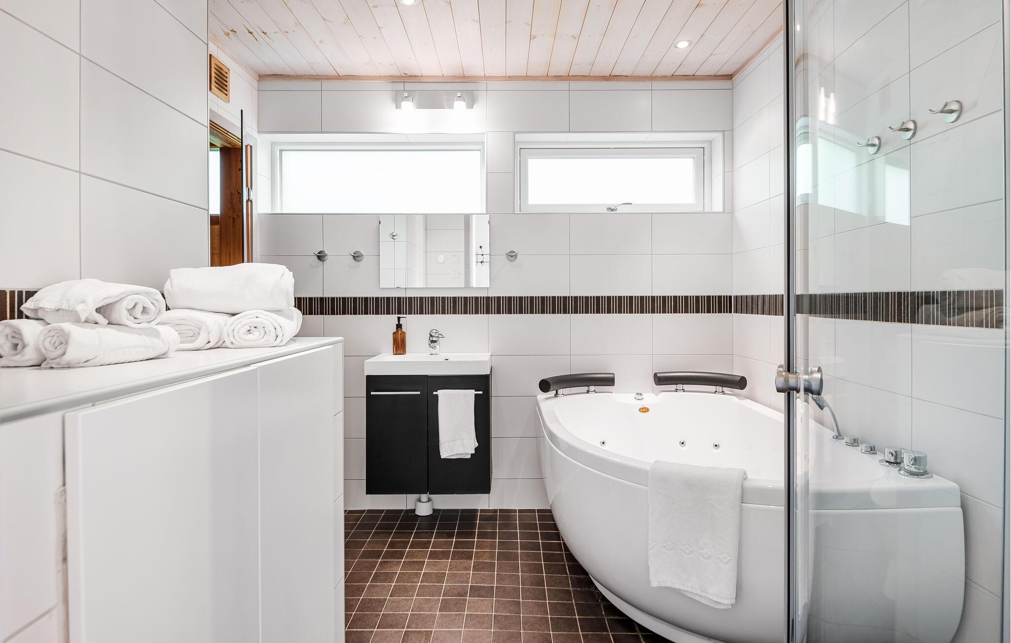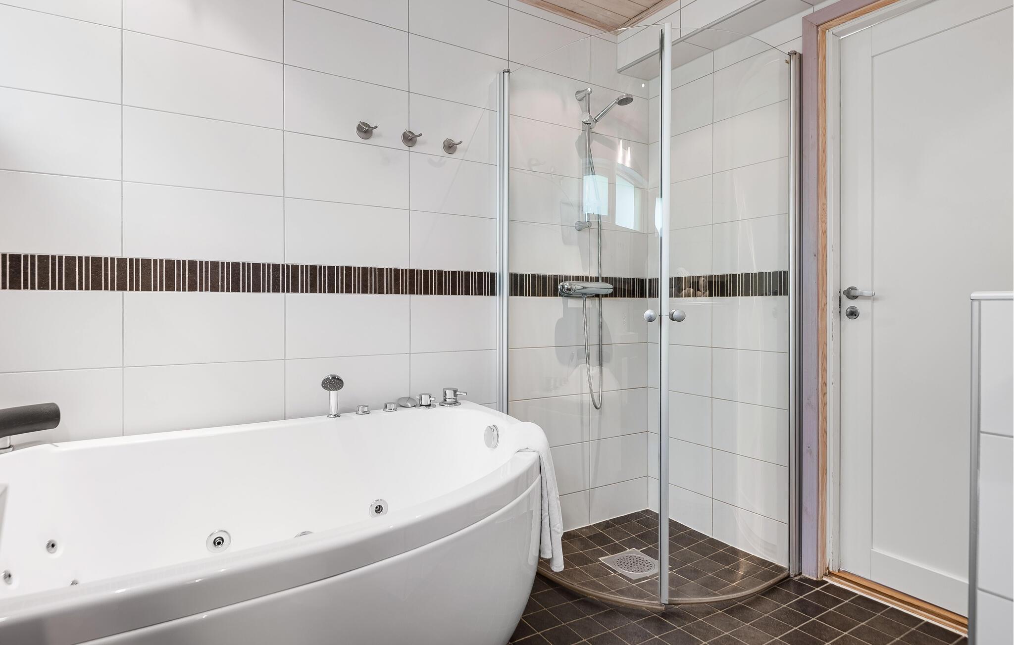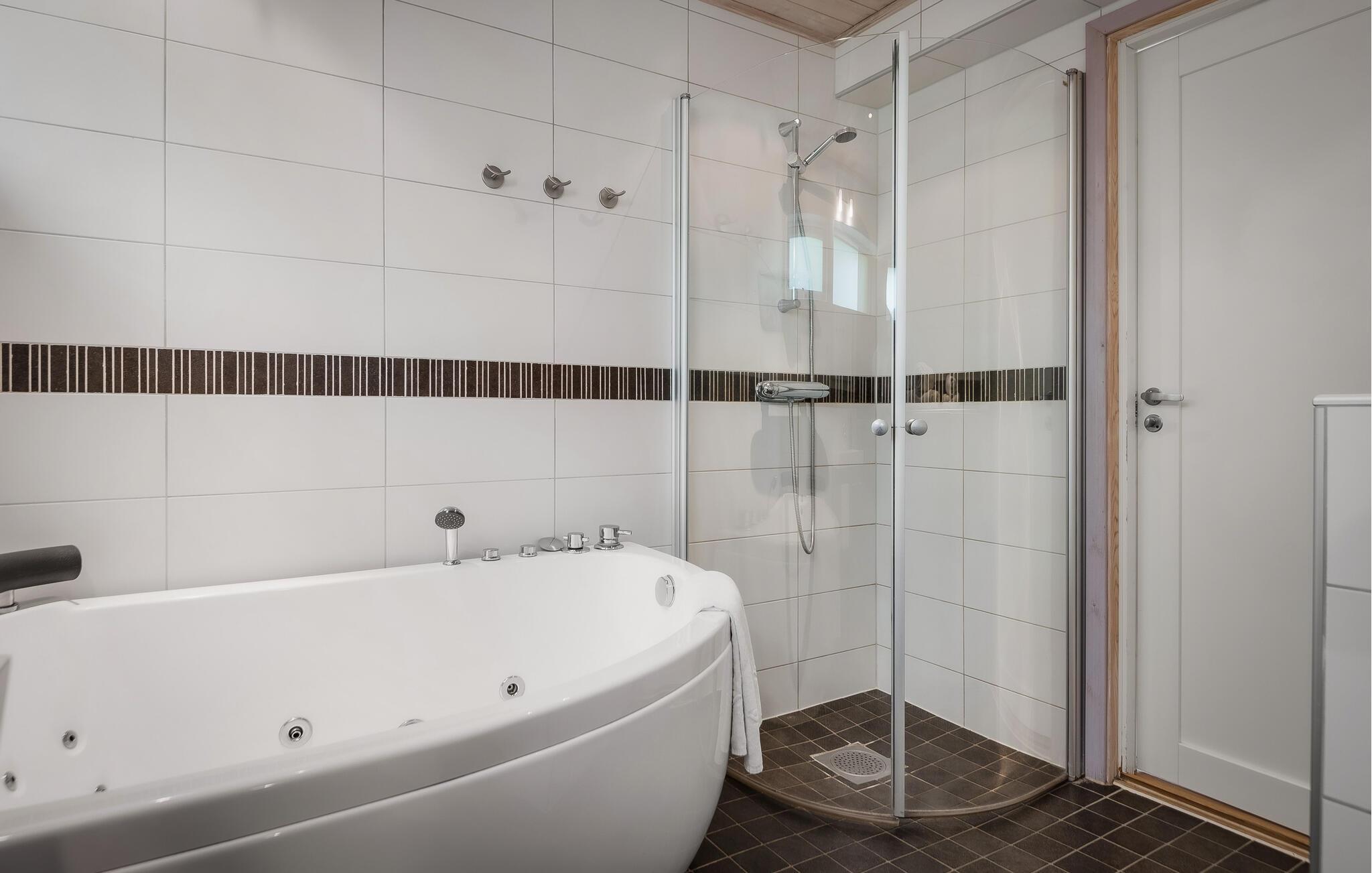 Dette feriehus tilbyder en rummelig, men varm atmosfære med masser af træ, højt til loftet og et åbent opholdsområde, der lægger op til socialt samvær. Nyd afslappende timer her med en kop kaffe, lyt til musik eller stream serier komfortabelt på sofaen. Tilbring aftenerne sammen med at spille kort eller brætspil, og slap af ved dagens slutning, mens pejsen knitrer sagte.