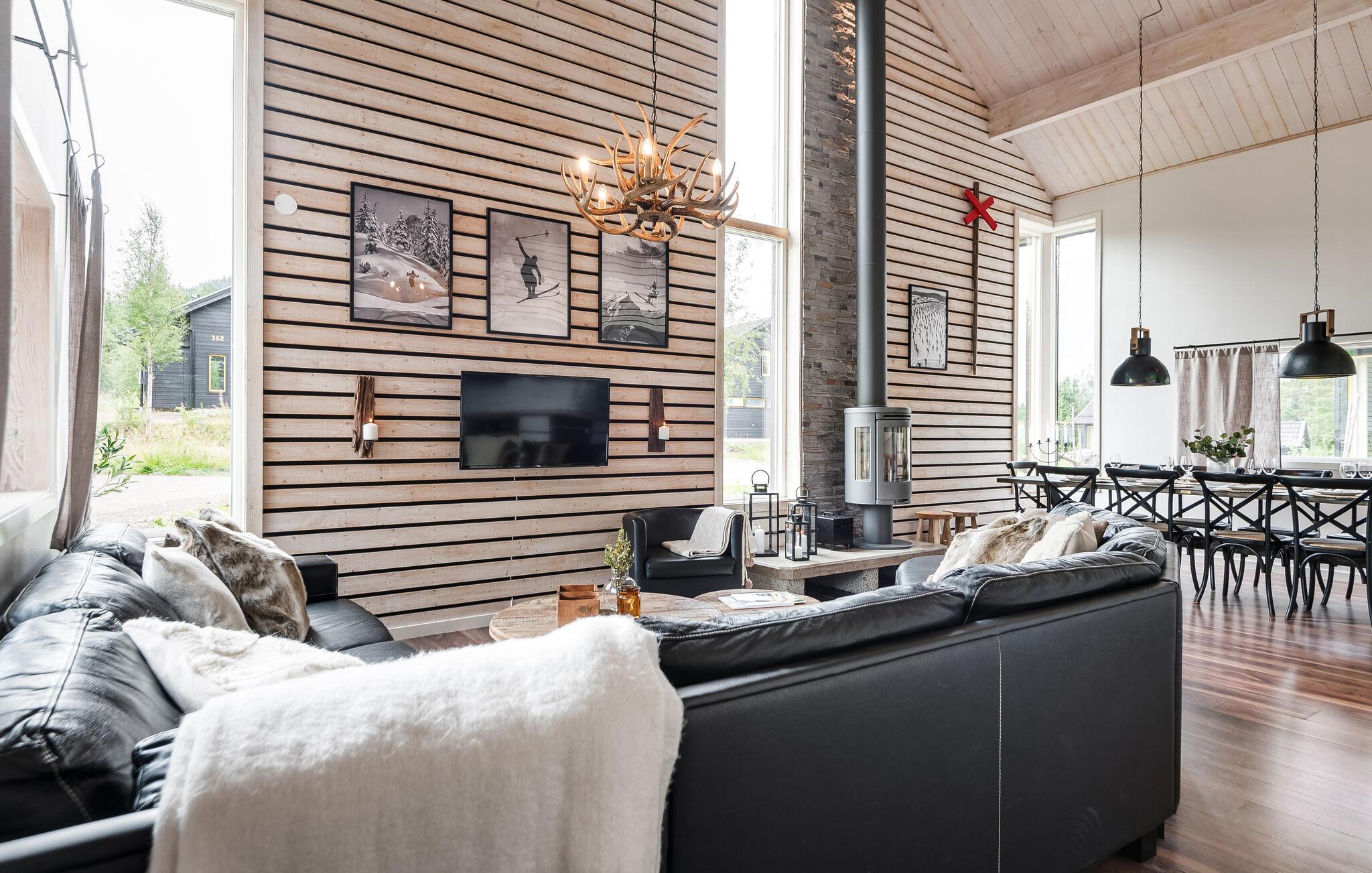 Glæd jer til en behagelig ferie med venner eller familie i dette arkitektonisk attraktive og smagfulde hjem midt i et malerisk landskab, der lægger op til udendørsaktiviteter hele året rundt. Lyt til brændeovnens knitren, mens I nyder hyggelige måltider ved det hyggeligt oplyste spisebord eller samles om et glas vin i den rummelige sofagruppe. Efter en lang dag udendørs kan I forkæle jer selv med nogle afslappende øjeblikke i saunaen eller se en god film.
