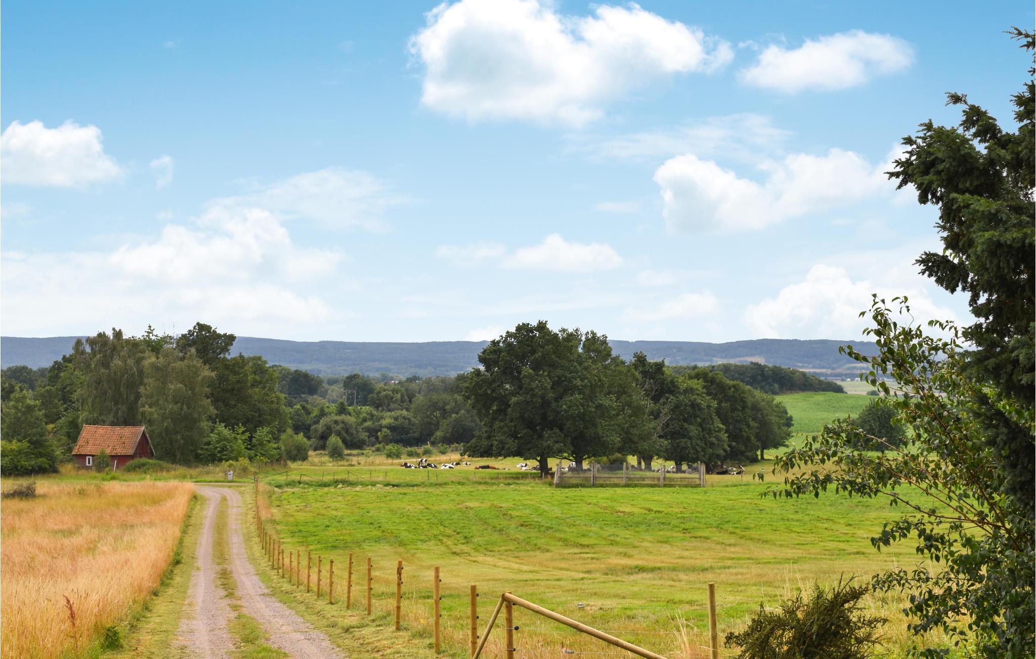 Kom og slap af i dette feriehus på en stor naturgrund omgivet af smuk natur. Den tidligere gård lægger op til en ferie med mange udendørs aktiviteter, her vil især lystfiskere få noget for pengene. Huset byder jer velkommen med hyggelig indretning og mange faciliteter. Nyd tiden sammen i en smagfuld atmosfære og glæd jer til atmosfæriske aftener ved pejsen. Tag jeres måltider med på terrassen eller haven, hvor I kan tilbringe dejlige timer i solen. Panoramaudsigten over det bølgende landskab er simpelthen vidunderlig.