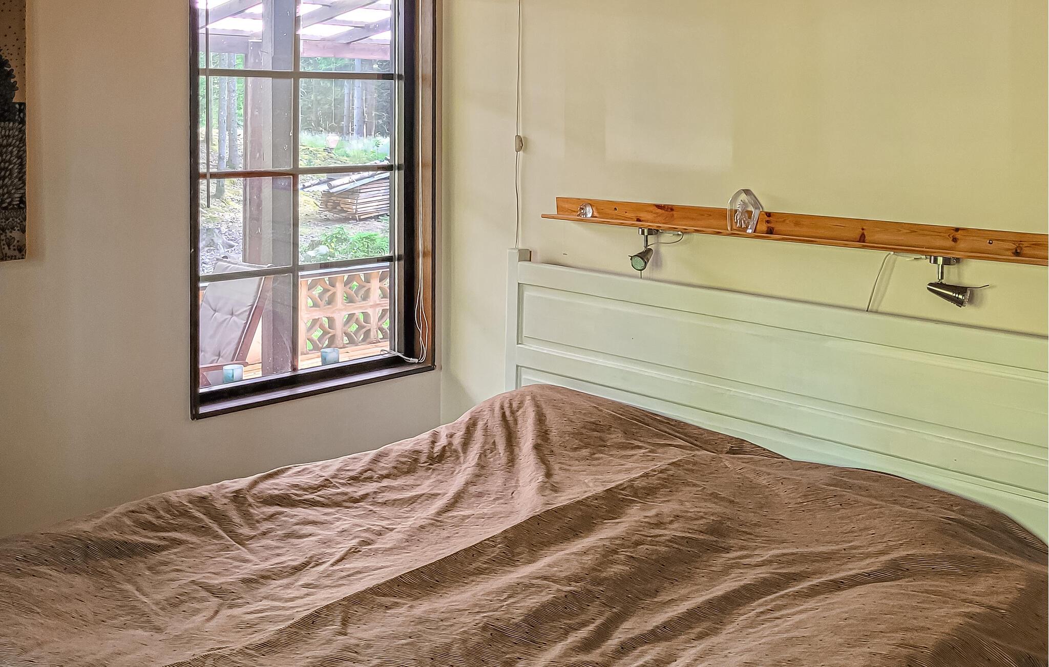 Hold en skøn ferie i dette feriehus, der ligger lidt afsides midt i den smukke natur. I har adgang til gode vandre- og løbestier nærmest lige udenfor døren. På den store terrasse kan I nyde dagens måltider eller en kop kaffe i skyggen. Tænd op i den hyggelige pejs om aftenen og lav nogle lækre s'mores (kiks med skumfiduser) sammen med børnene.