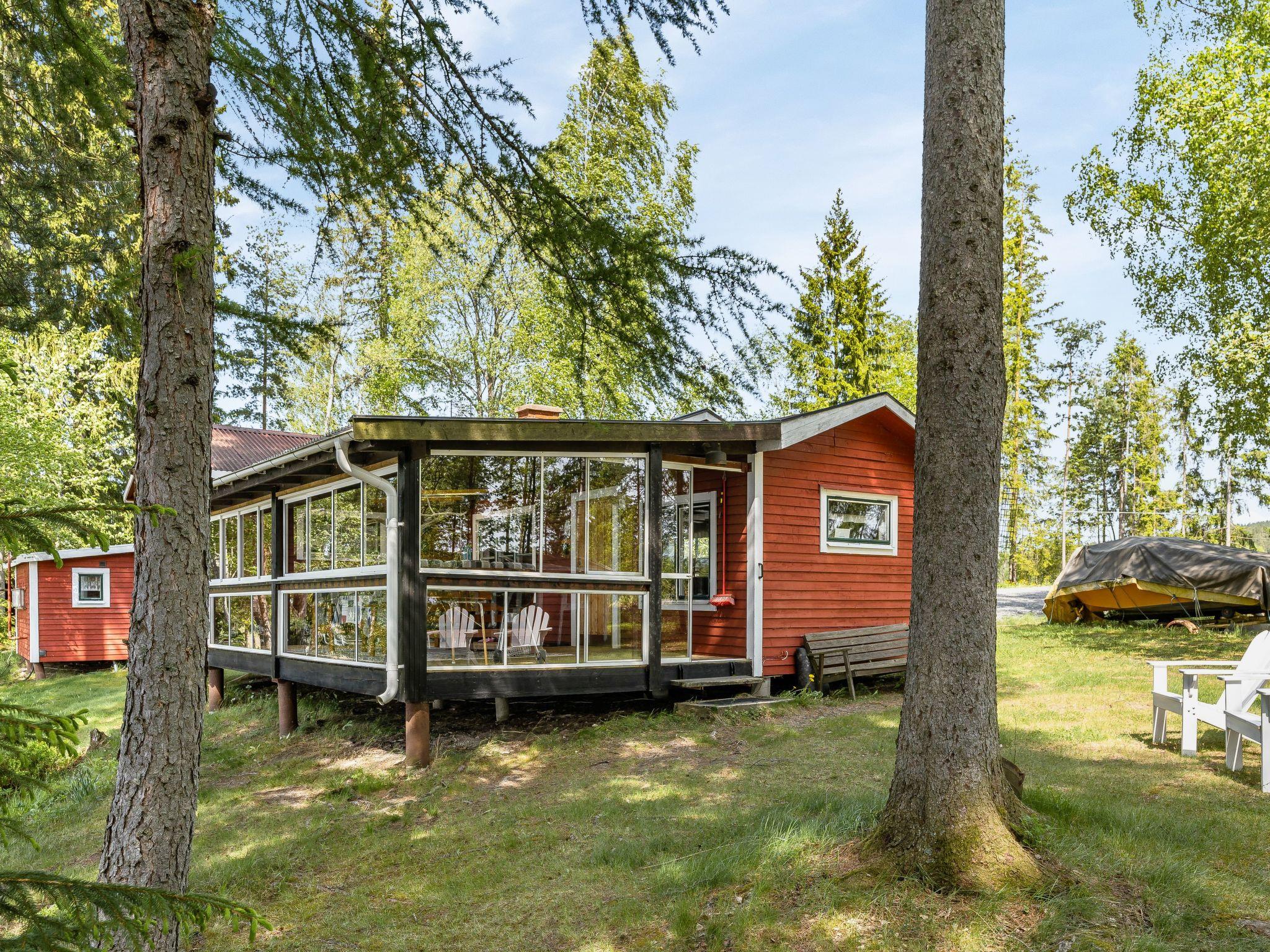 "Löaborn", 3-room house 55 m2. Bright, comfortable and cosy furnishings: living/sleeping room with 1 double sofabed, Scandinavian wood stove, dining table and satellite TV. Exit to the veranda. 1 double bedroom. 1 room with 2 beds. Open kitchen (oven, dishwasher, 4 ceramic glass hob hotplates, microwave, freezer, electric coffee machine). Exit to the garden. Shower/WC. Electric heating. Wooden floors. Terrace roofed. Terrace furniture, barbecue (portable). View of the lake. Facilities: washing machine, iron, baby cot. Please note: one double bedroom is outside the apartment. Non-smoking house. Maximum 2 pets/ dogs allowed. Fire extinguisher. Freezer approx. 90 l. Rowing boat included in the price. Löaborn