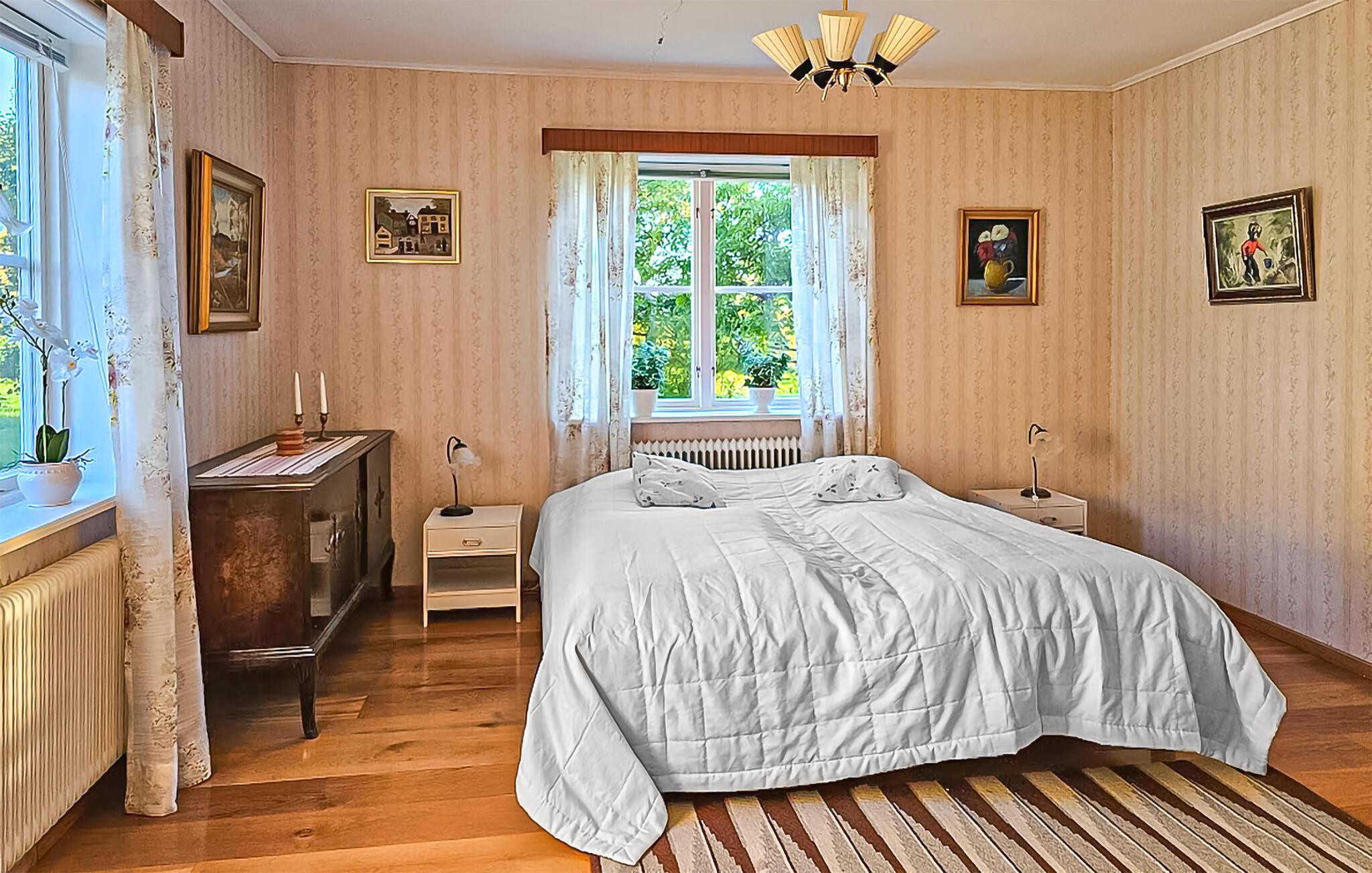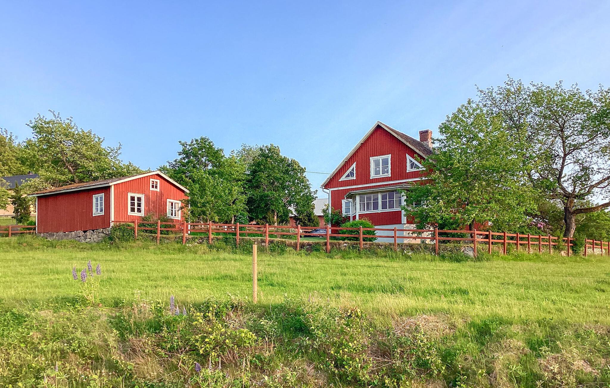 Tilbring ferien i dette vidunderlige feriehus med egen robåd. Beliggenheden er optimal, og der hører en frodig have til huset. Der er kun 200 meter til Åskogssjön, hvor I kan bade og fiske. I dette feriehus kan I koble af med en god kop kaffe, eller nyde varmen ved brændeovnen, når der er koldt udenfor. I vil sætte pris på at tage lange ture i robåden, hvorfra I kan fange både aborrer og gedder. Aftnerne kan I tilbringe i havestuen med udsigt til søen, eller I kan grille jeres nyfangede fisk. Smålandsk idyl har I rigeligt af her, med skovens dyr lige udenfor vinduet. Som udgangspunkt for feriens udflugter egner huset sig perfekt f.eks. til Jönköping og Växjö, eller hvorfor ikke tage en dag ved stranden ved Vestervik. Vimmerby er ligeledes inden for rækkevidde. I dette feriehus kommer I tæt på Smålands skove.