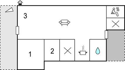 Huset har to soveværelser, køkken, stue, badeværelse og sauna. Der er fem sovepladser fordelt på et soveværelse med en dobbeltseng og et soveværelse med en køjeseng. En af sovepladserne er en luftmadras, som placeres i stuen. Tilbring en vidunderlig ferie her i enhver årstid.