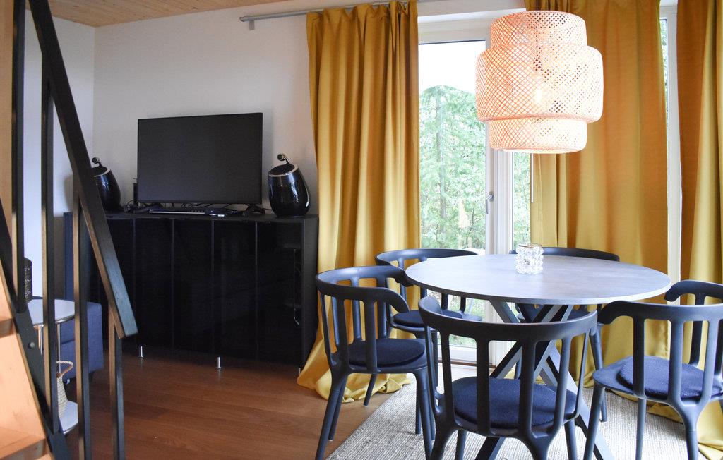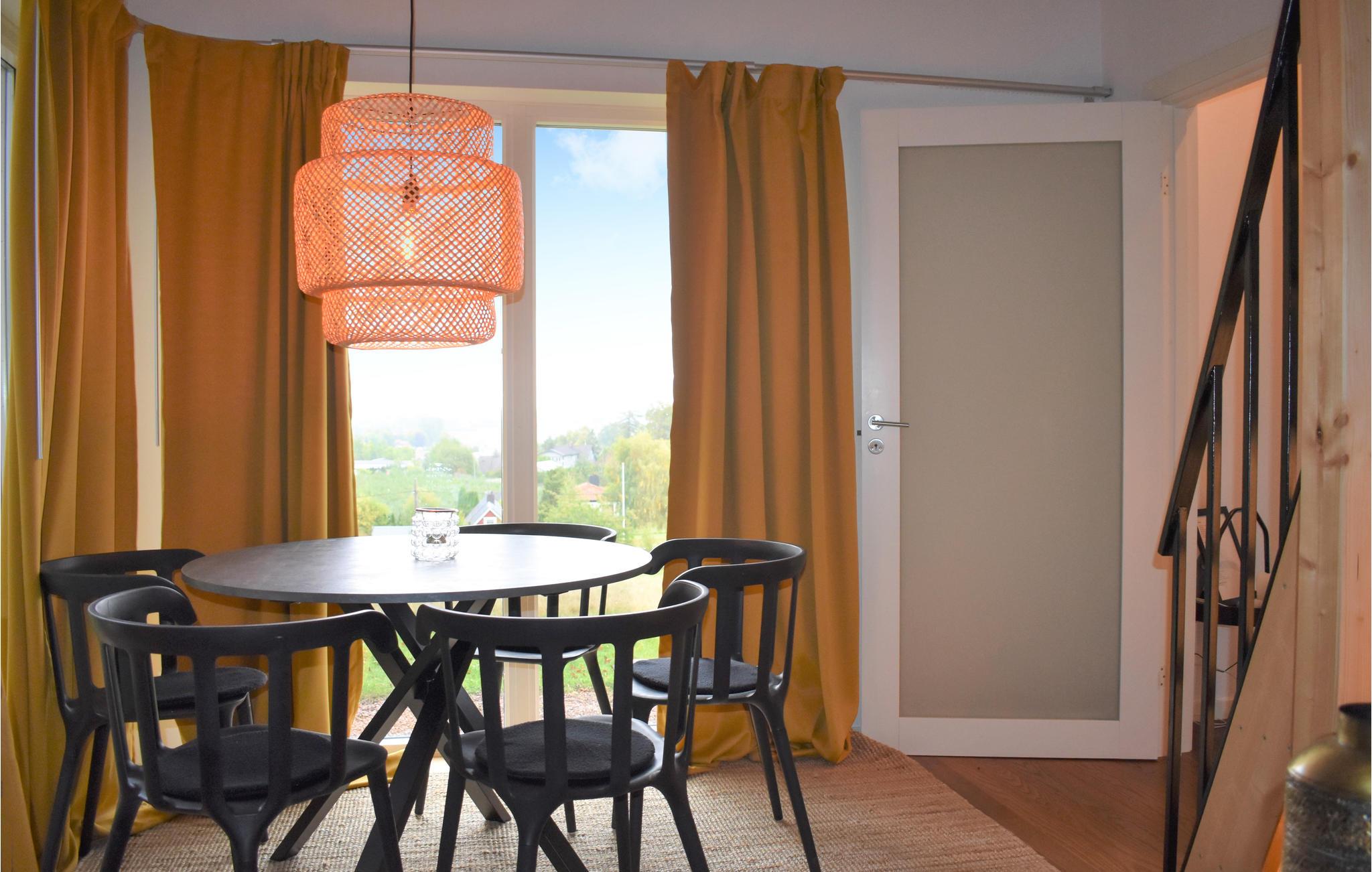 Velkommen til dette autentiske og moderne feriehus med udsigt over frugtplantagelandskabet. Her kan du selv prøve Tiny House-trenden og tilbringe en dejlig ferie i området Tollarp. Inde i huset finder du moderne og praktiske møbler. I stueetagen kan I samles ved spisebordet, mens feriemåltiderne tilberedes i det åbne køkken. Soveområdet er på hemsen, hvortil stejle trapper fører. Takket være smart-tv, kabel-tv og WiFi er det garanteret ikke kedeligt selv på kølige dage.