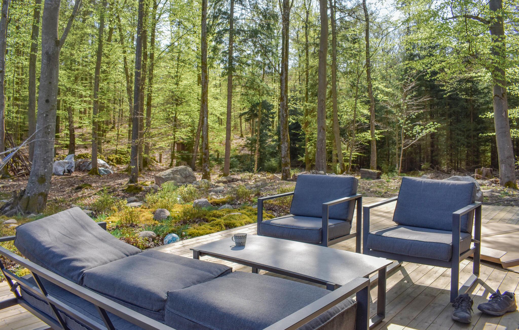 Til huset hører en rummelig terrassen, hvor I kan nyde freden, roen og en friskbrygget kop kaffe lige fra morgenstunden til lyden af fuglenes kvidren. Hvis vejret er godt hele dagen, kan I fyre op i grillen og servere gode bøffer under aftensolen, mens I lægger planer for de kommende dage.
