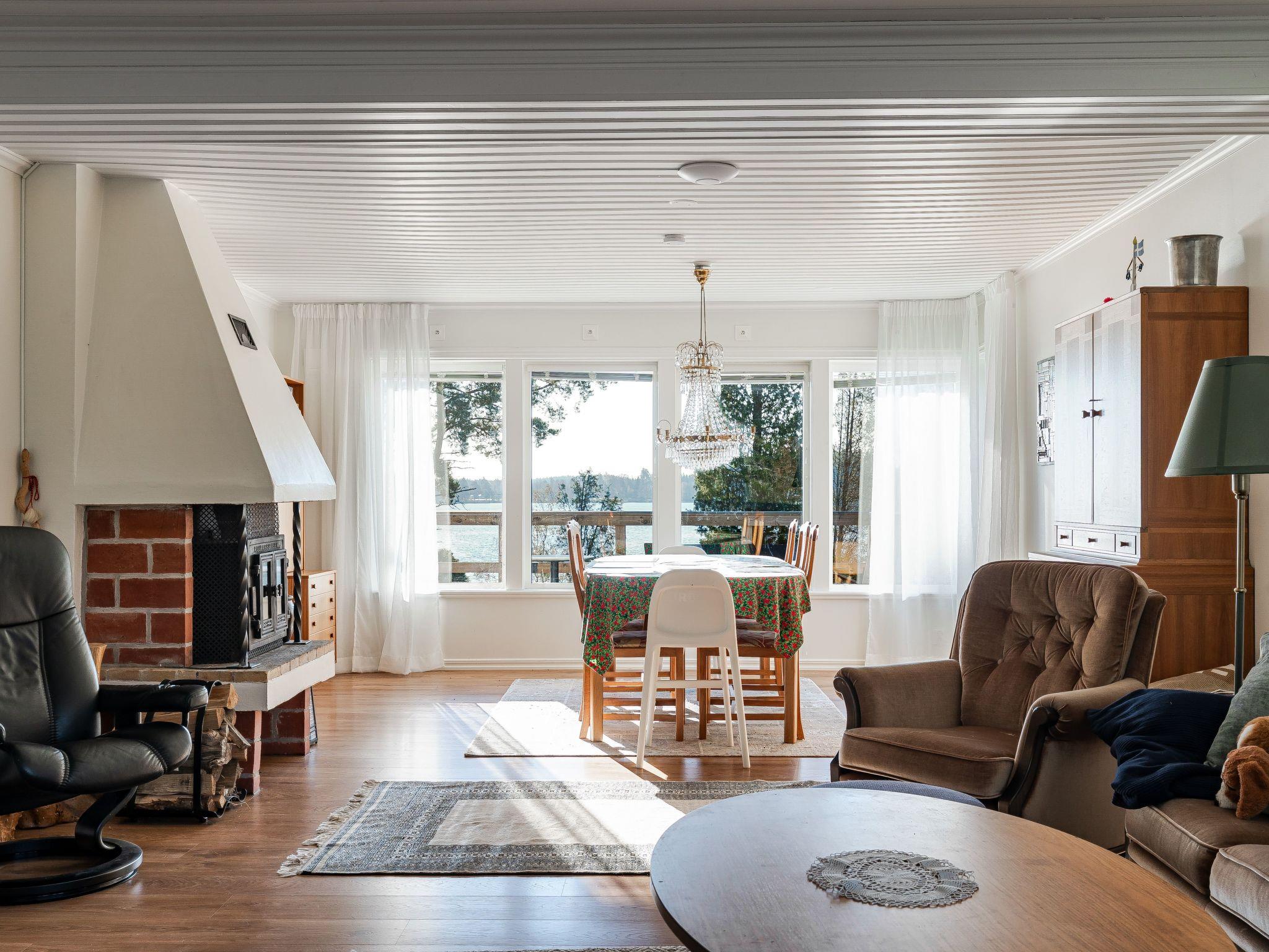 "Vilångstorp", 5-room villa 140 m2. Spacious and bright, comfortable and cosy furnishings: living/dining room 35 m2 with Scandinavian wood stove, dining table and TV. 1 room with 1 double bed (180 cm, length 200 cm). 1 room with 1 double bed and TV. 1 room with 2 beds (90 cm, length 200 cm). 1 double bedroom with 2 beds. Large, open kitchen (4 hot plates, oven, dishwasher, microwave, freezer, electric coffee machine) with dining nook. Exit to the veranda. Shower/WC. Heating, boiler (100 litres). Wooden floors, parquet floors. Comfortable furnishings in the country house style. Large terrace 70 m2 partly roofed, large porch 60 m2. Terrace furniture, barbecue (portable). Beautiful panoramic view of the lake, the countryside and the forest. Facilities: washing machine, dryer, sauna, iron. Internet (WiFi, free). Please note: one double bedroom is outside the apartment. Non-smoking house. Private mooring. Maximum 2 pets/ dogs allowed. Smoke alarm, fire extinguisher.