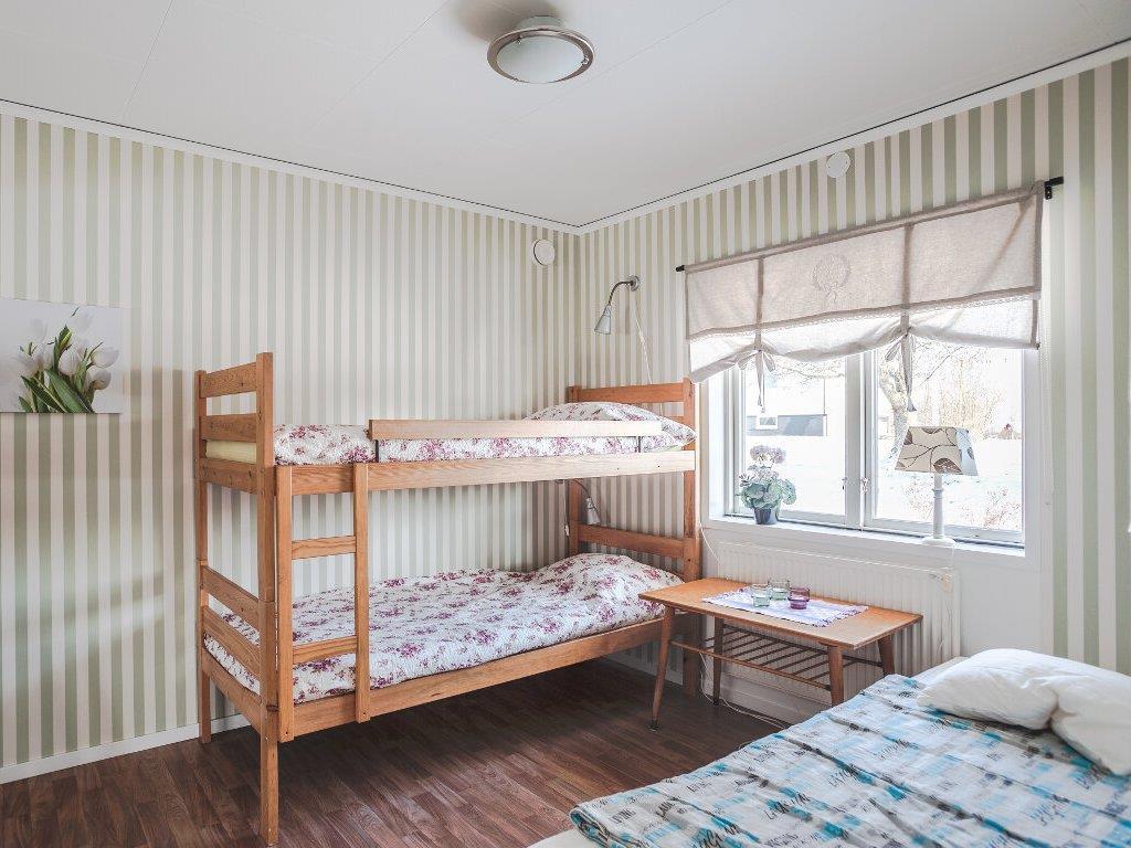 Der er to soveværelser – det ene soveværelse har en dobbeltseng og også en babyseng og en barneseng. I det andet værelse er der en køjeseng til 2 personer og en enkeltseng.