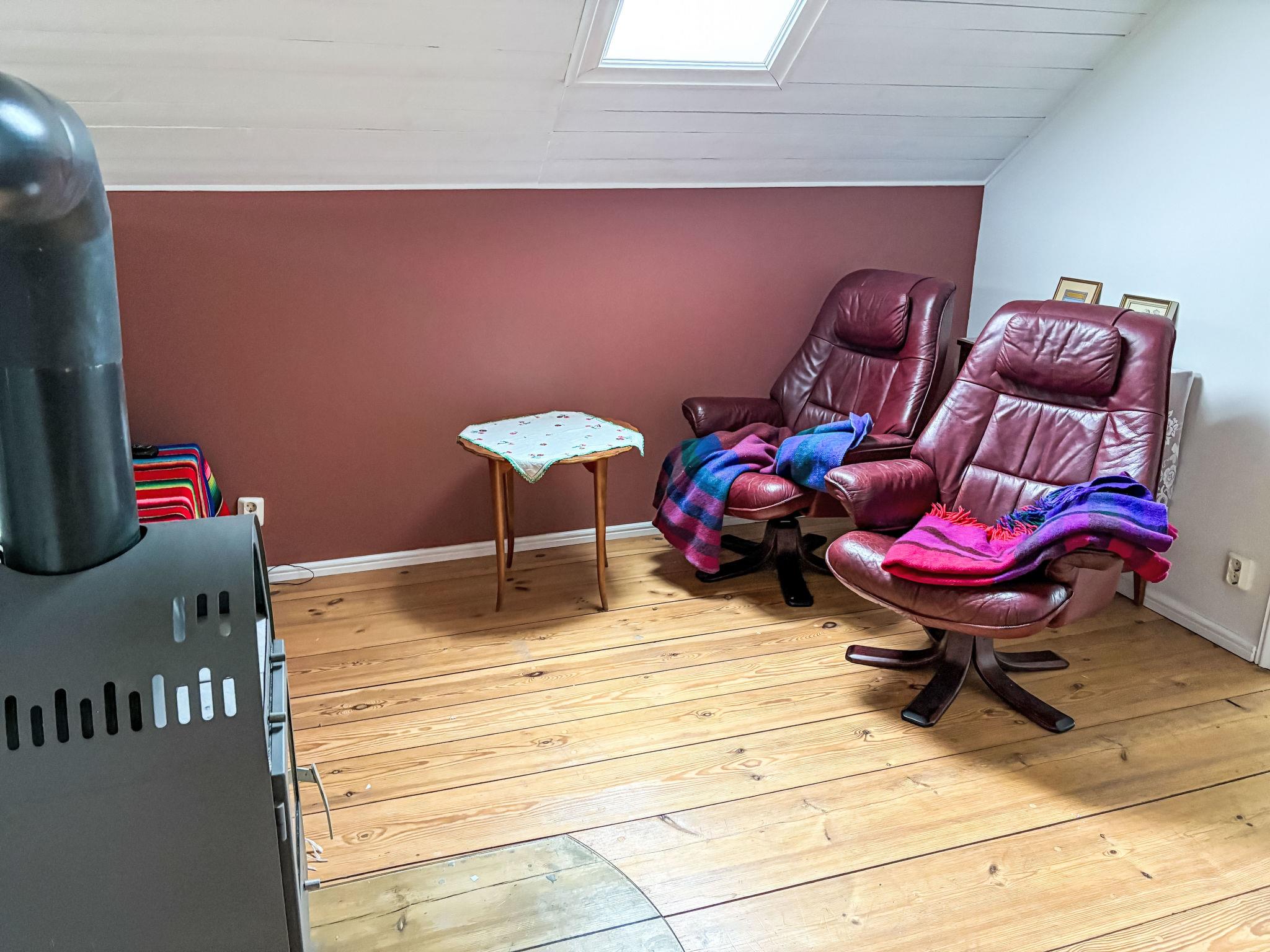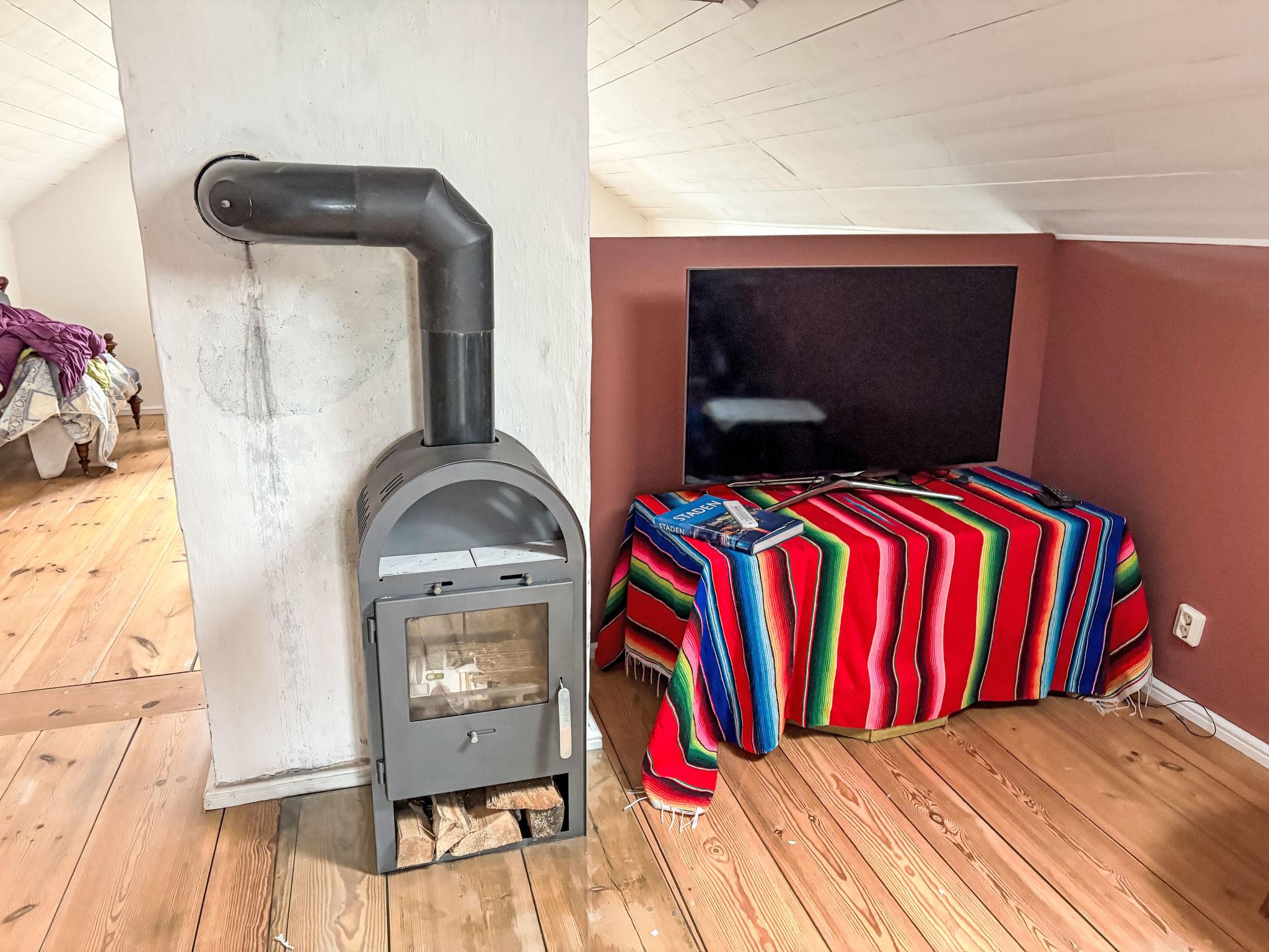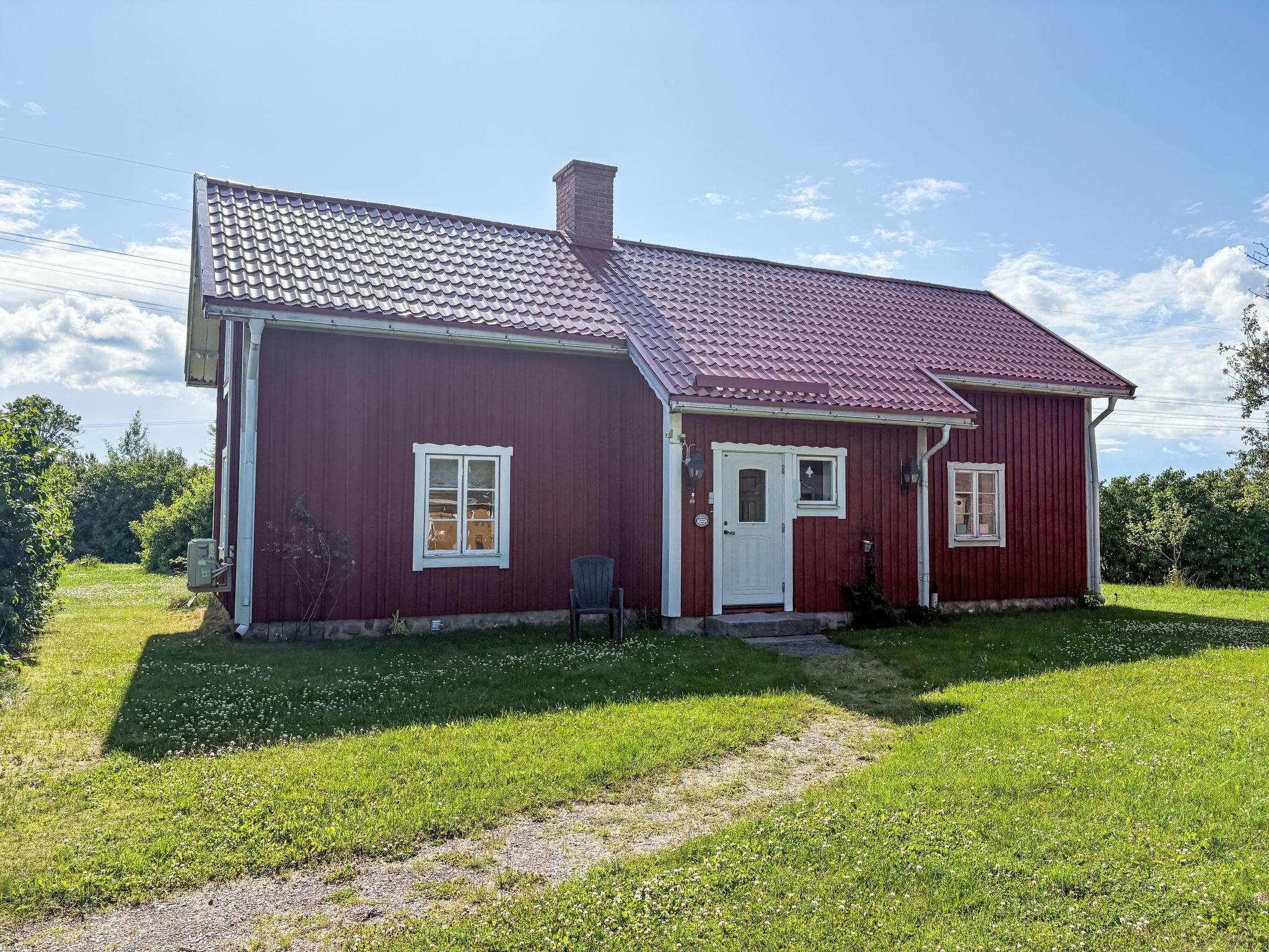 "Skyberga Torp", 3-room house 123 m2 on 2 levels. Spacious and bright, with sloping ceilings, very tasteful and cosy furnishings: living room 25 m2 with open-hearth fireplace. Dining room 25 m2 with dining table. Exit to the garden, to the veranda. Large kitchen (4 hot plates, oven, dishwasher, microwave, freezer, electric coffee machine, steamer) with Scandinavian wood stove. Upper floor: living/sleeping room 45 m2, with sloping ceilings with 1 double bed (180 cm, length 200 cm). 1 room 15 m2 with 1 double bed (180 cm, length 200 cm). Bath/WC. Heating, electric heating, air-conditioning (100 litres). Wooden floors. Comfortable furnishings in the country house style. Small terrace 18 m2, garden. Terrace furniture, barbecue (portable). Beautiful view of the countryside and the forest. Facilities: washing machine, iron. Please note: non-smoking house. Private entrance, smoke alarm, fire extinguisher. Instead of an enclosed bedroom, some sleeping areas are located in an open-plan area (gallery, alcove, etc.).