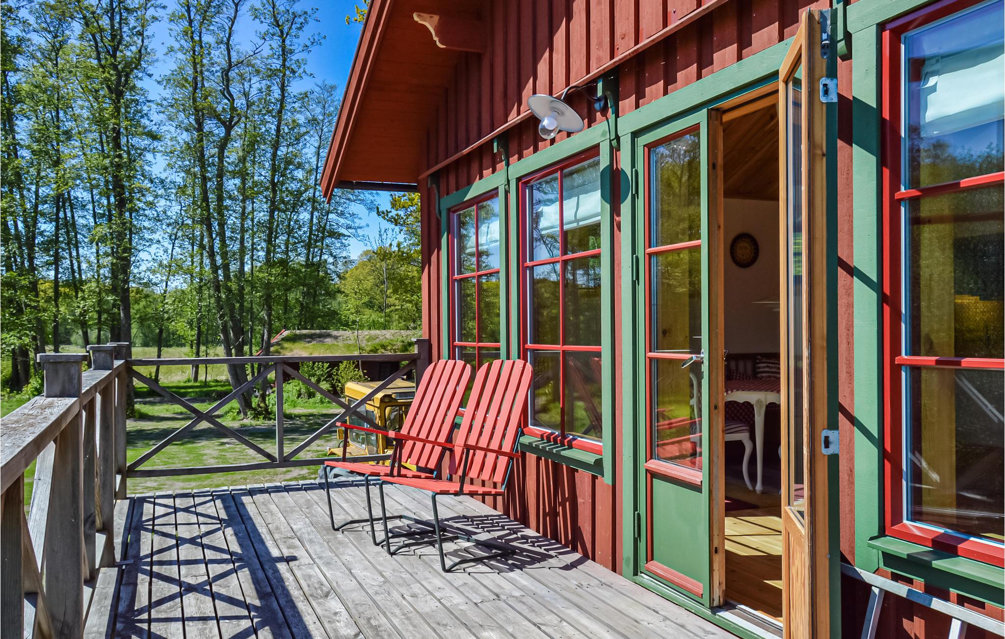 Lige ved siden af ligger Askholmen naturreservat med egetræsskrænter, enge og vandrestier. Huset har alle bekvemmeligheder og 6 sengepladser, hvoraf den ene er i stuen. Stor terrasse med udsigt over vandet, spisestue med pejs til hyggelige aftener og åbent, moderne køkken med brændeovn.