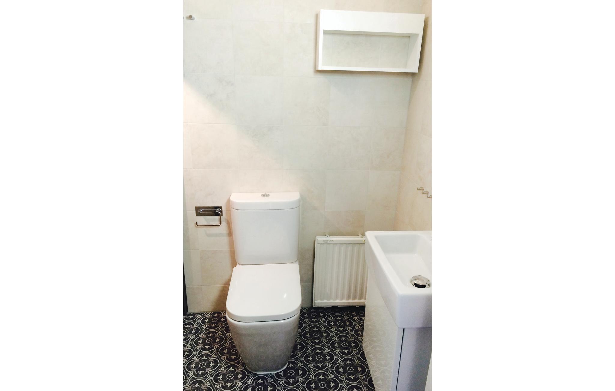 Badeværelse (nr. 1) - WC. Varmt og koldt vand. Bruser
