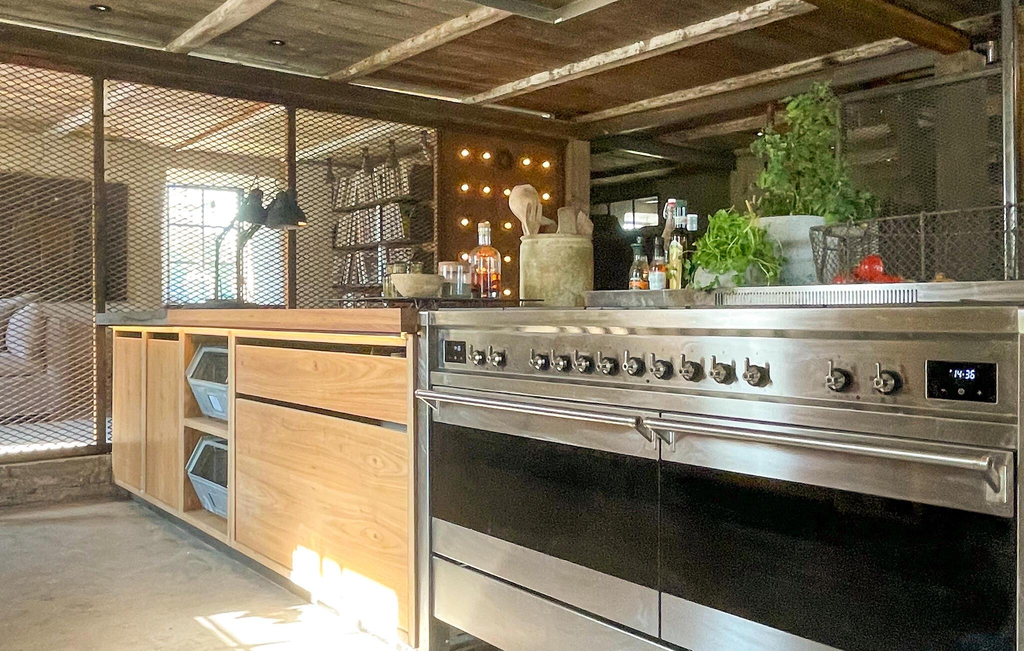 En arkitektonisk designet ombygning af en traditionel lade, dette unikke feriehus tilbyder en atmosfære, der kombinerer moderne design og naturlige materialer. Her venter et gennemtænkt rumkoncept med åbent design, højt til loftet og masser af lysindfald. Lad jer inspirere af den specielle atmosfære indeni. Slap af i det rummelige orangeriområde med ægte daddelpalmer eller gør jer godt tilpas i det stilfulde musikrum. Nyd måltider sammen i det moderne spisekøkken. Takket være den vellykkede kombination af beton, træ og glas skabes et helt specielt, stille tilbagetog.