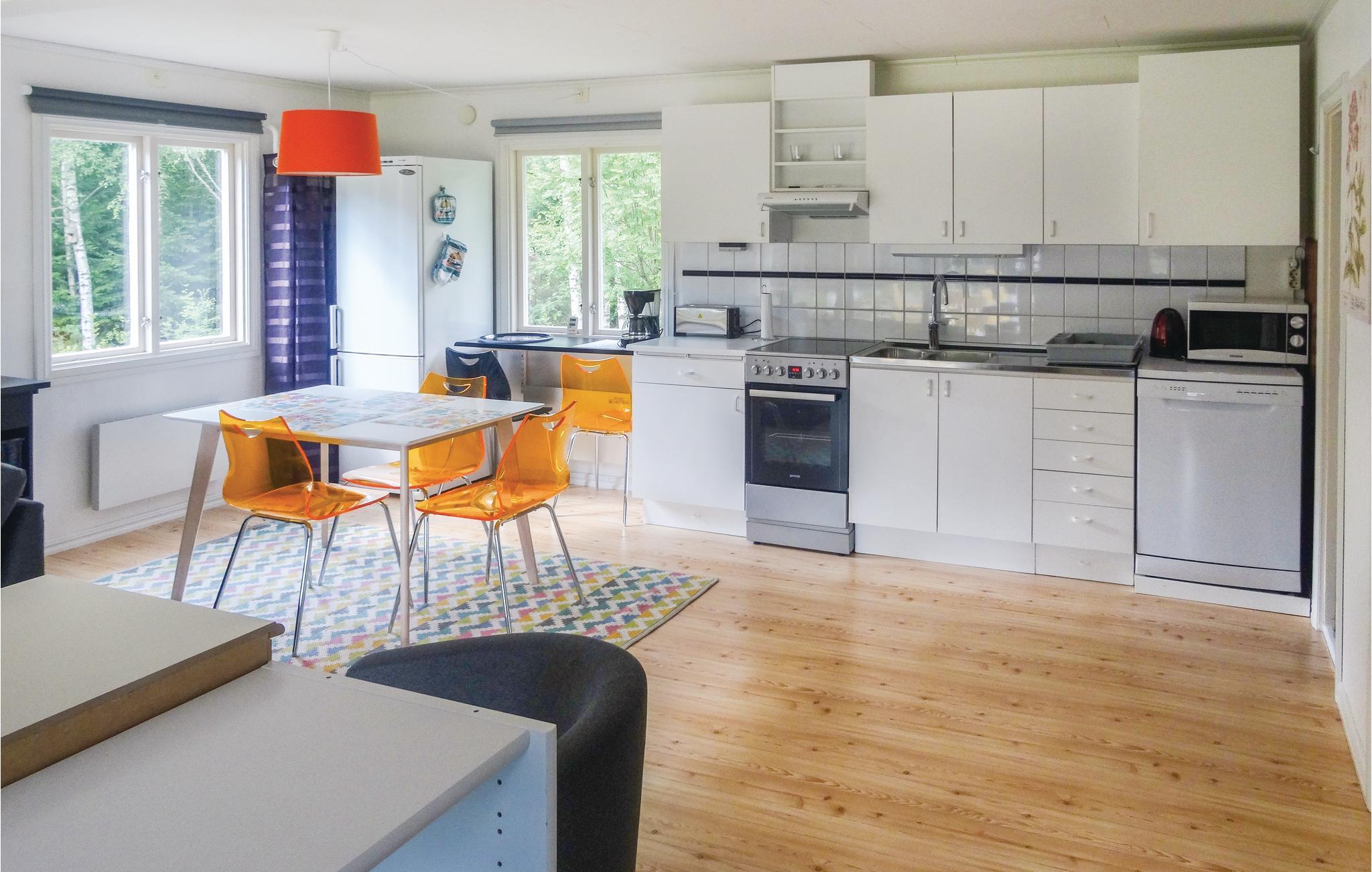 Dette feriehus ligger op til søen Jällunden. Her kan I nyde den skønneste udsigt over vandet og dejlige sandstrande ud til det lave vand. I alrummet er der en sovesofa og i soveværelserne senge af god kvalitet. Køkken og stue er i et, her kan de der har køkkentjans nemt underholde sig med dem der slapper af. Huset har moderne og gode møbler. I bor nær Långaryd i Hallands Län men i et Smålandsk landskab. Der er stor terrasse i to himmelretninger. Fibernet sørger for hurtigt internet. Husets robåd ligger parat til spændende ture på søen hvor I kan fange gedde, aborre og sandart. Nær både High Chaparral og nationalparken Store Mosse, ligesom der er flere elgparker i nærheden. Ca. 50 km både Isaberg og Ullared ligesom der er flere golfbaner bl.a. Rydöbruk og Hestra. Kør til Halmstad (64 km) med mange butikker, golfbaner og ikke mindst gode sandstrande ud til det friske salte hav.