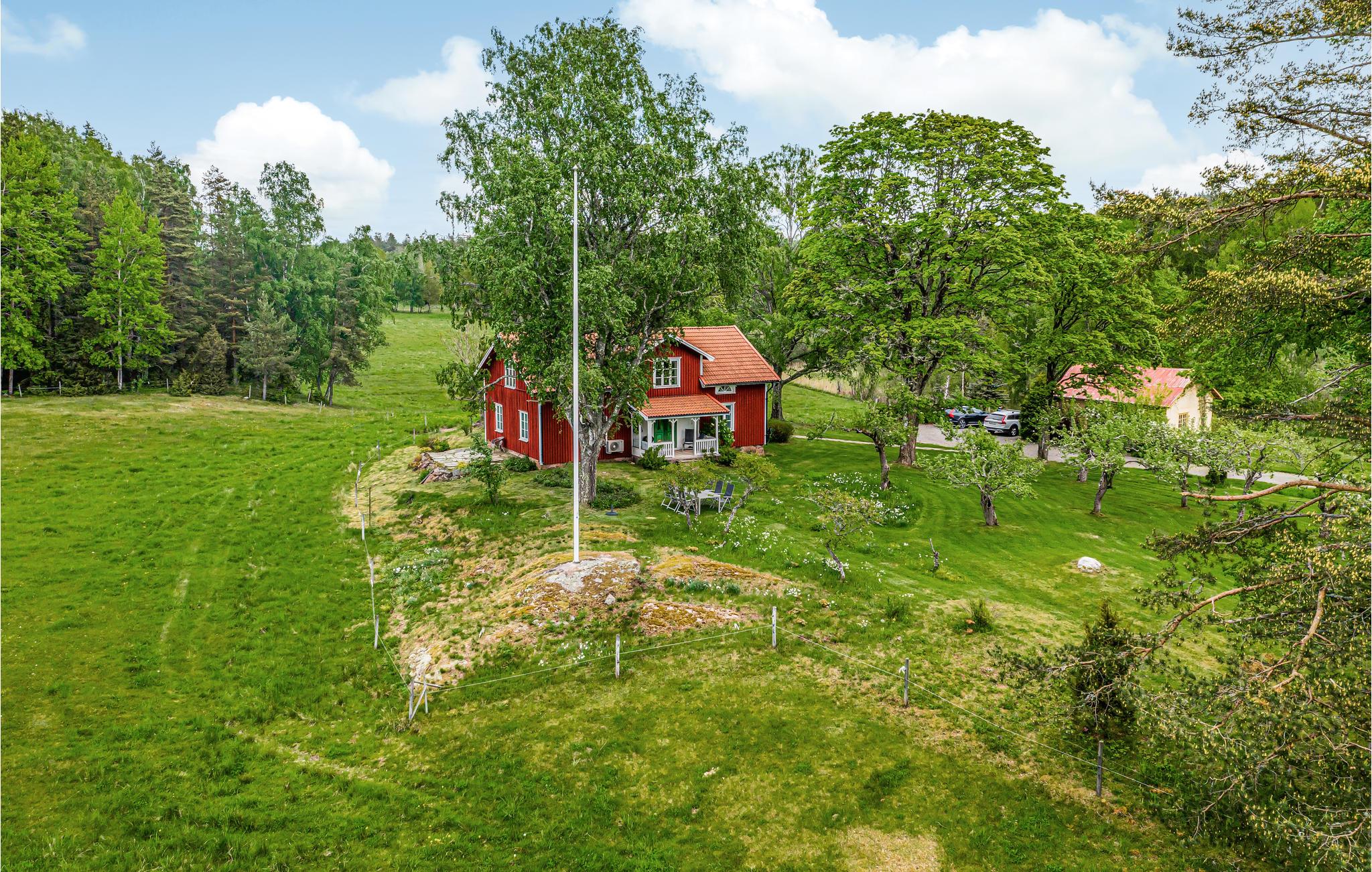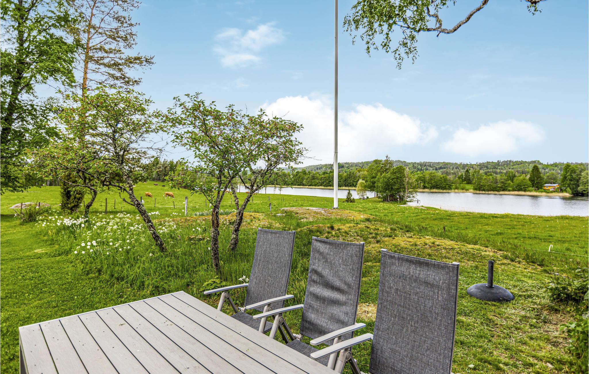 Velkommen til Näset der ligger i den smukke Värmländske natur når den er bedst. Dette feriehus ligger helt uforstyrret på en stor grund, med lang strandlinje og helt egen badevig på en odde. I kanten af vandet ligger husets egen bro og en robåd. Omkring ferieboligen er der marker med dyr der græsser og nærmeste nabo er på den anden side af søen. I huset er der tre soveværelser med i alt seks senge. I det lille anneks er der fire senge. I begge huse er der køkken og badeværelse. Der er forbindelse fra søen til den næste sø Eldan, der er mange fisk og desuden kan I plukke bær og svampe i naturen.