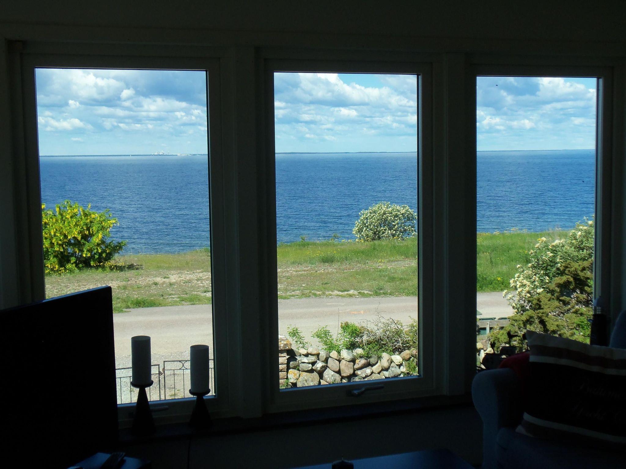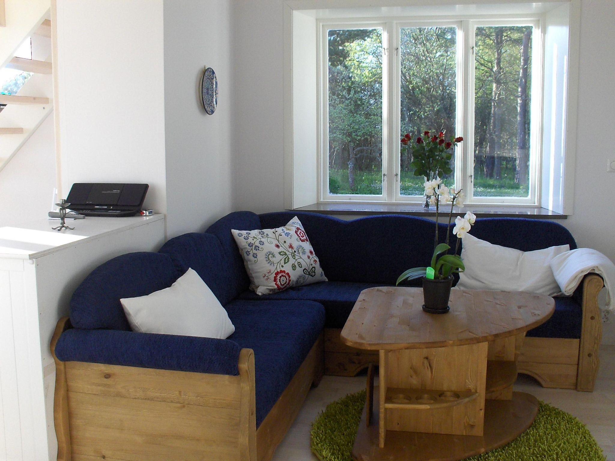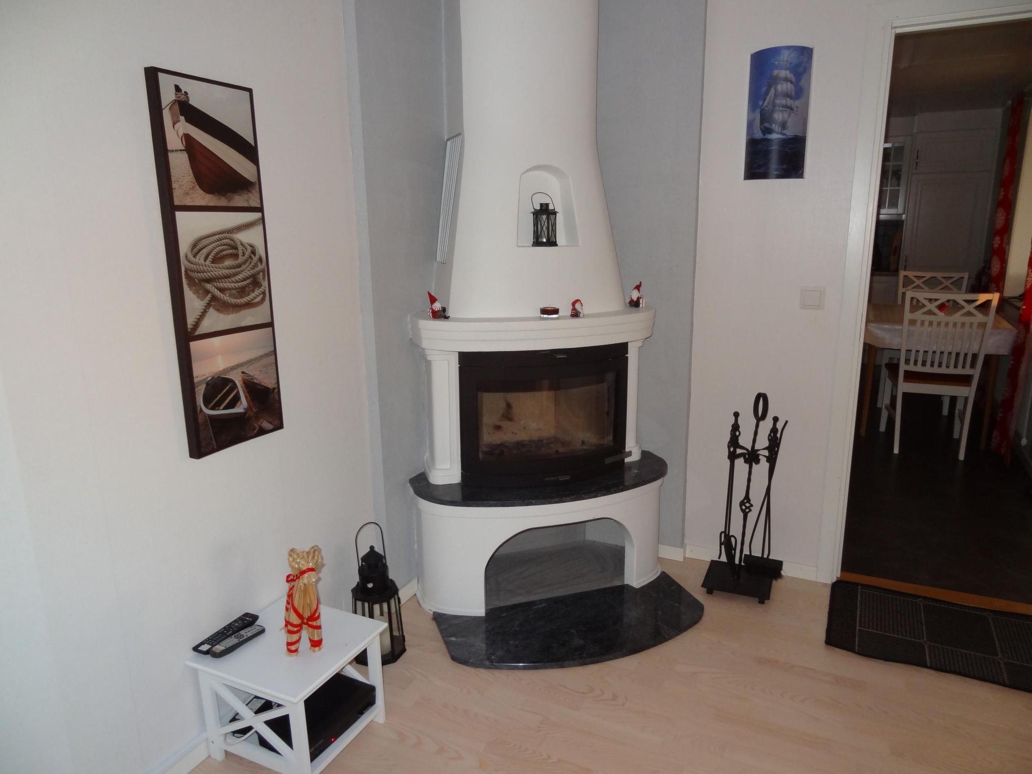 Inside, the villa's décor is both elegant and inviting, featuring a fully-equipped kitchen complete with ceramic hob, oven, microwave, dishwasher, and a cozy wood-burning stove. The ground floor houses a spacious living room adorned with a fireplace and a sofa bed, alongside a dining room with expansive windows offering western views towards the ocean, allowing natural light to fill the space. Comfort is further enhanced by a fully tiled bathroom with under-floor heating on this level. The upper floor introduces an additional living room, bathed in light from three large windows that frame mesmerizing sea views, two bedrooms (one with a double bed), and a convenient bathroom equipped with a shower and a petite sauna, creating a perfect blend of comfort and luxury.