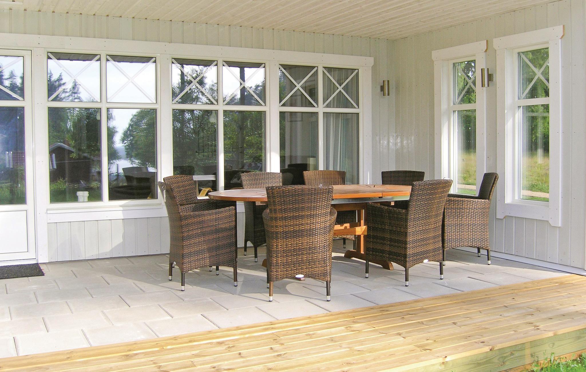 Hyggeligt hus med vægten lagt på kvalitet. Fra huset er der udsigt ud over søen Flåren, huset er bygget med en velgennemtænkt planløsning. Huset har et lavt energiforbrug med bl.a. termoruder i tre lag og gulvvarme. I køkkenet er der en køkkenø, der gør det nemmere at være fælles om madlavningen. Gode senge i samtlige soveværelser. Kaminen sørger for behagelig varme. Inkl. båd og mulighed for at leje flere. I kan bade i søen, hvor der også er gedde, ål, aborre og sandart. Når isen har nået den rette tykkelse, kan I isfiske på søen. Rum til fiskegrej ved søen. Legeplads for mindre børn. Huset ligger nær Lagan i det smålandske landskab. Både søen Vidöstern og Lagaån ligger under 3 km fra huset. Elgparken Laganland, Buslandet og en 36-hullers golfbane inden for en afstand af otte kilometer. Køb ind i Värnamo eller Ljungby. Cykler kan lejes af husejeren.