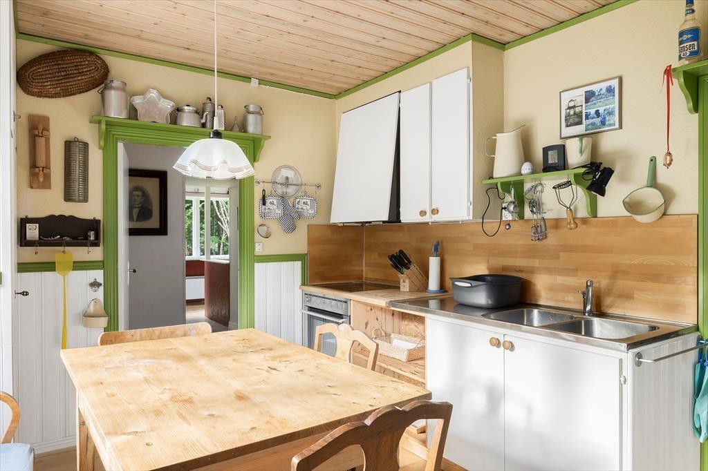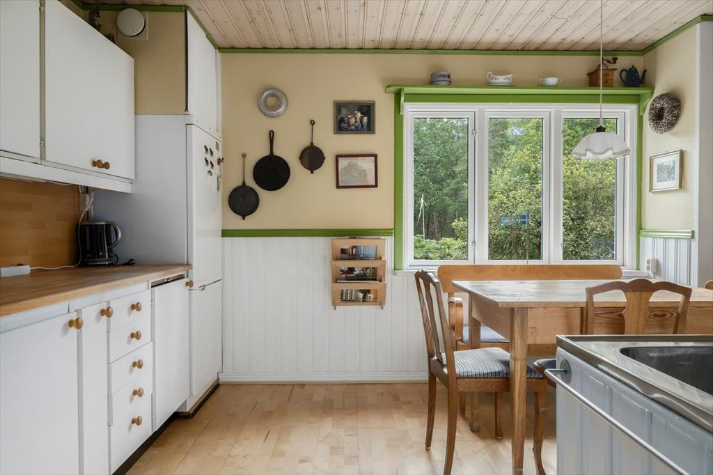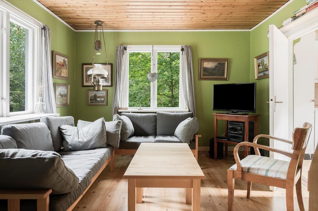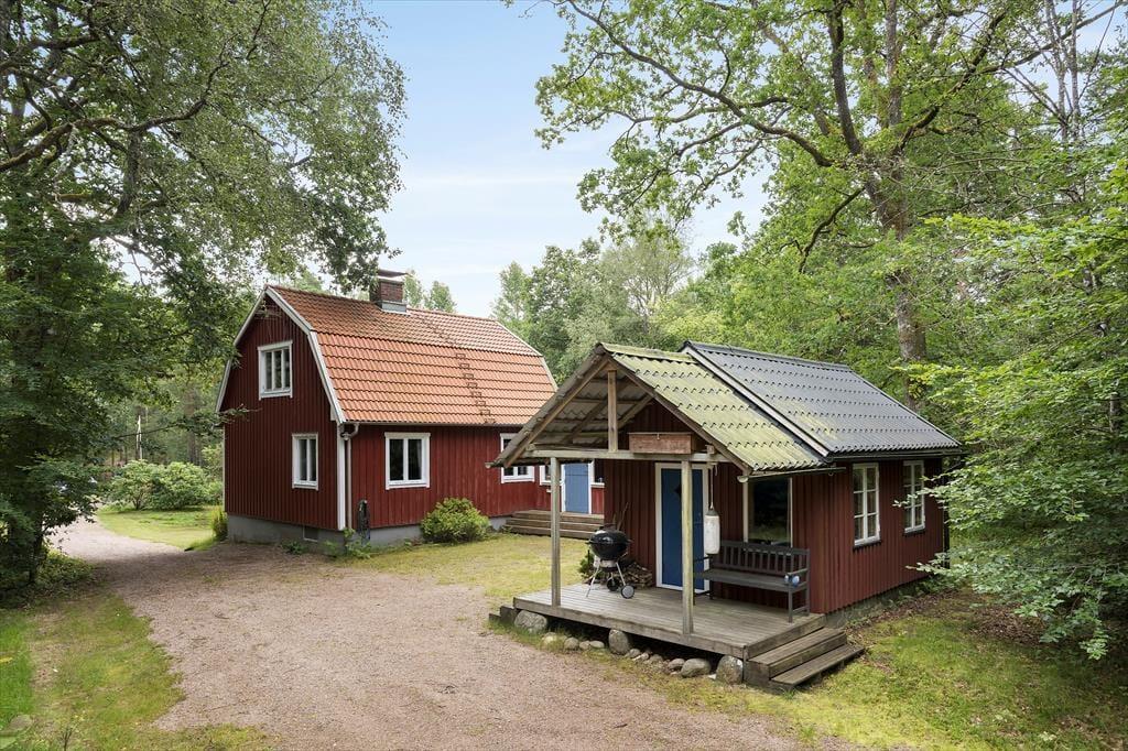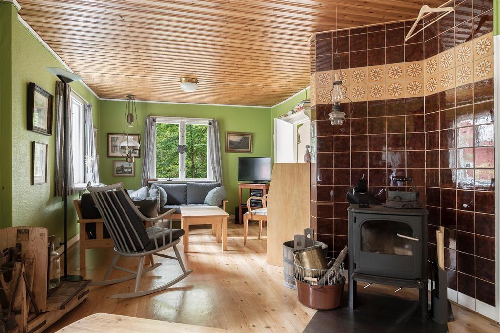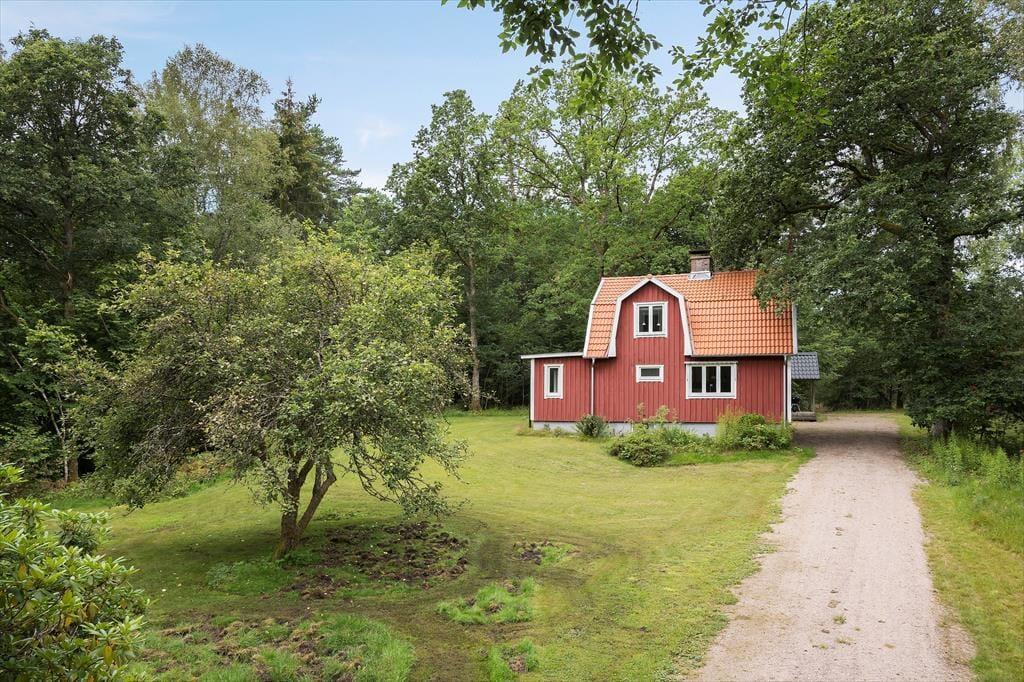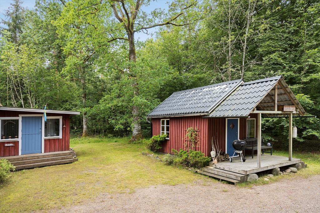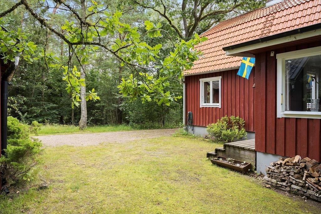 Sommerhus i Laholm, Sydsverige, med plads til 4 voksne, 2 børn og 2 husdyr. Der er en hyggelig indretning med bl.a. brændeovn, og du finder desuden vaskemaskine i boligen.