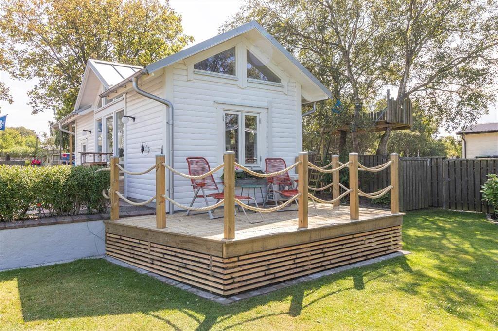 Det moderne indrettede lille feriehus Lilla Strandstugan ligger på grundejernes ejendom i den charmerende badeby Skummeslövsstrand i regionen Halland. Den lange, børnevenlige sandstrand ligger kun 150 meter væk. Du kan handle, spise ude eller nyde en kop kaffe efter kun ca. 1,2 km. Skummeslövsstrand ligger knap en times kørsel nord for Malmö, mens den smukke havneby og kendte tennismetropol Båstad kun ligger 10 minutters kørsel derfra. Halmstad og Helsingborg er også nemme at nå i bil. I området finder du adskillige vandre- og cykelstier, og hvis du kan lide at fiske, kan du nå floden Lagan, der ligger ca. 10 km væk: perfekt til laksfiskeri. En særlig udflugt er elgsafari i elgparken »Smålandet Älgsafari«, som du kan nå på ca. 45 minutter i bil.