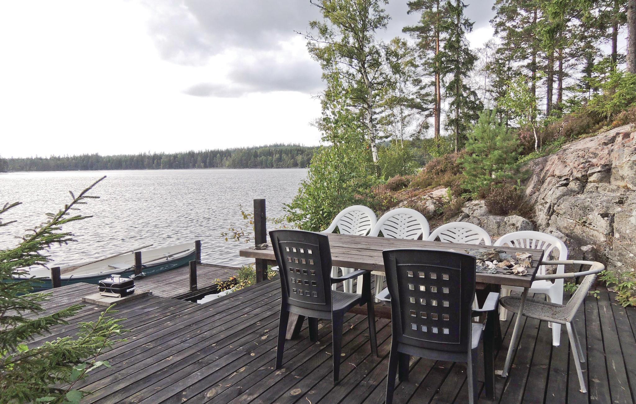 I en rolig og afsides beliggenhed ved Näversjön inviterer dette lyse og hyggelige feriehus jer til at nyde en ferie i naturen med venner eller familie. Store vinduer tilbyder udsigt over søen og skovene. Glæd jer til hyggelig madlavning og hyggelige måltider, snak om svundne tider ved den knitrende pejs eller find sammen om en spændende film i den komfortable sofagruppe.
