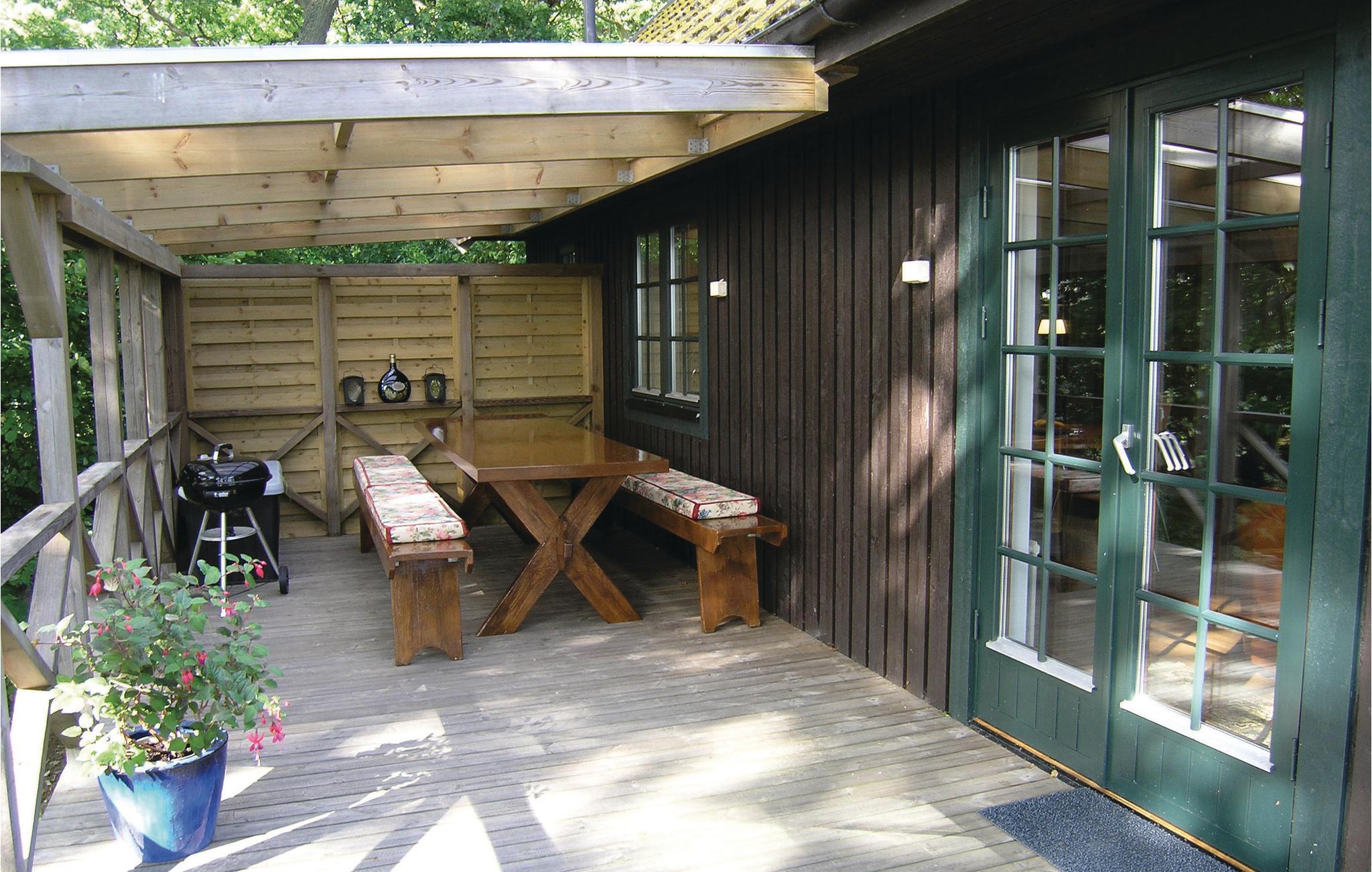 Beliggenheden er fantastisk og der er en enestående udsigt som I vil huske længe efter ferien er slut. Huset er fordelt på to plan, indrettet med to soveværelser på første sal, samt køkken og alrum i åben forbindelse i stueplan. Herfra er der udgang til en delvist overdækket terrasse, samt yderligere en udendørs plads i haven, hvor der er sol helt frem til den går ned. Huset ligger på ejers grund, men ejer er sjældent til stede. I området er der meget at se og tage del i, denne del af kysten anses af mange som Skånes smukkeste.