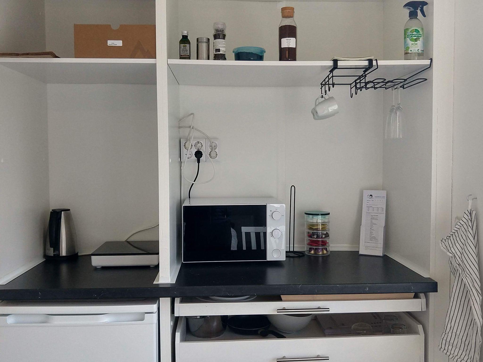 Private apartment with own entrance for 1-2 people: bedroom, en-suite bathroom, free 60Mb/sec wi-fi, 44" smart TV. Situated 25 meters from lake shore, surrounded by Swedish woods, wonderfully quiet and relaxing, panoramic windows on fabulous lake panorama. Own door entrance from outside to a ground-floor apartment on the corner of large villa. 18sqm bedroom , 12sqm private bathroom with steam shower, bathtub and double handbasins. Small kitchenette with hot-plate, micro-oven, fridge, mini-dishwasher, cutlery and utensils, essential spices, tea and coffee (Nespresso) making equipment. BEDROOM with king-bed. Baby cot available upon request. All bed linen and towels and are included. BATHROOM with toilet, handbasin, showercabin with handheld and rain head, sprinklers, steam generator, footmassage, bathtub with massage jets.