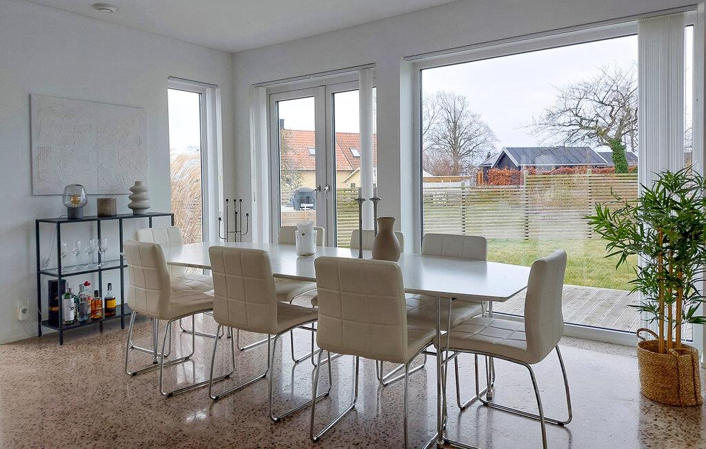 Kun en kort gåtur fra stranden vil dette komfortable feriehus begejstre jer med sit højkvalitets og smagfulde interiør. Store vinduer oversvømmer den hyggelige opholdsstue med masser af naturligt lys. Nyd harmoniske måltider ved spisebordet, planlæg jeres aktiviteter sammen og mød hinanden til hyggelige spilleaftener eller en god film.