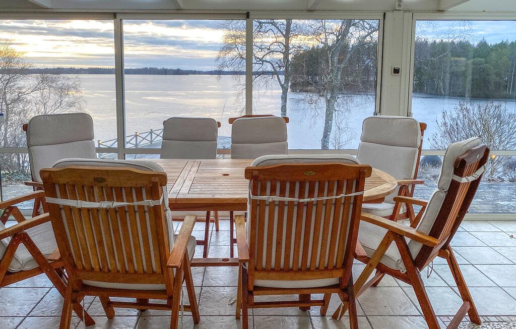 Velkommen til dette skønne hus ved Hidsen Sø. Dette fantastiske feriehus i Lerdala vil imponere jer med sin betagende beliggenhed og eksklusive faciliteter. Den rummelige bolig tilbyder moderne komfort, mens udestuen med panoramaudsigt og terrassen ved søen giver en følelse af plads og frihed. Læn jer tilbage i spabadet eller saunaen eller hold jer i form i fitnessrummet.