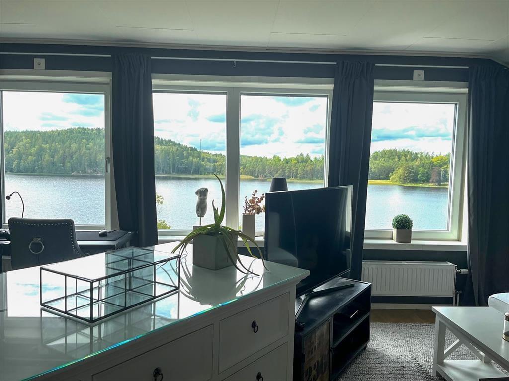 Sommerhus i Lerum, Vestsverige, med plads til 5 voksne. Der er en hyggelig indretning, og du finder desuden vaskemaskine, opvaskemaskine og tørretumbler i boligen.