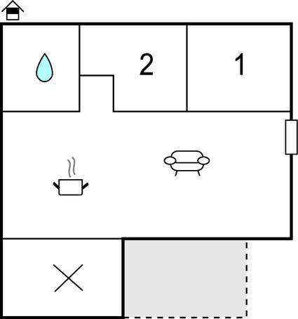 Opholdsstue/køkken - 2 Sovepladser. (Sofa, madras eller lignende).