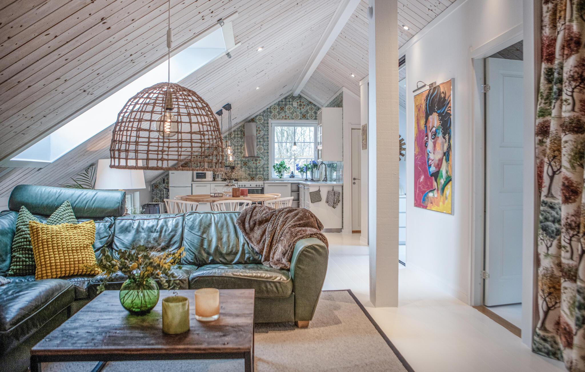 I en ejendom, for enden af vejen ligger denne hyggelige ferielejlighed på anden sal i smukke naturomgivelser.