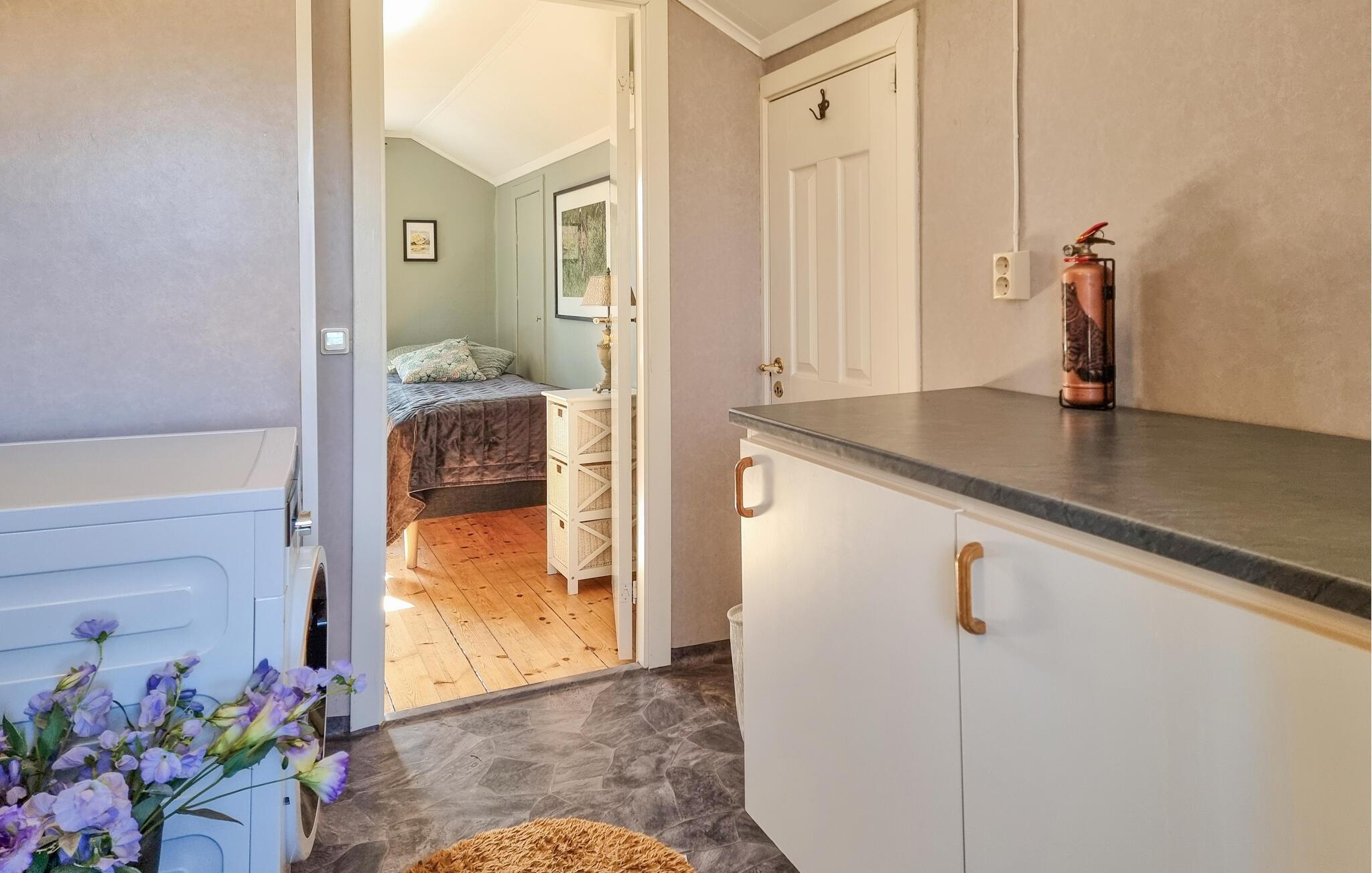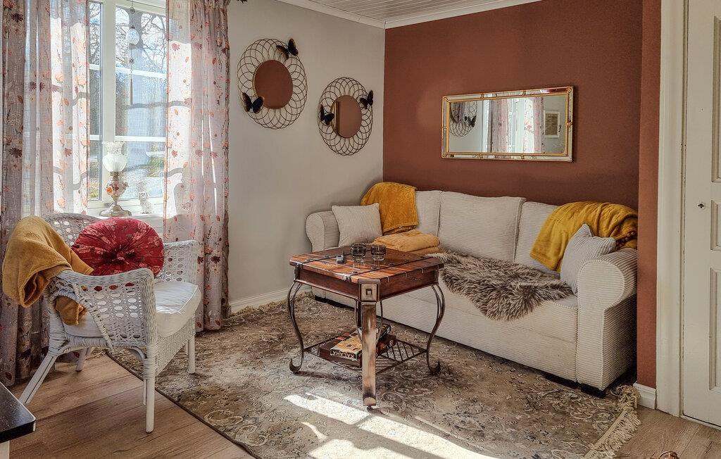 Kom ind og lad jer fortrylle af det velindrettede interiør i dette hyggelige feriehus, hvor I kan lægge hverdagen bag jer for en romantisk ferie som par eller som en lille familie. Glæd jer til hyggelige måltider ved det indbydende spisebord, afslappede spilleaftener eller stille læsetimer i den hyggelige stue.