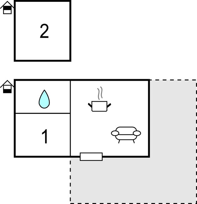 Opholdsstue/køkken - 2 Sovepladser. (Sofa, madras eller lignende).