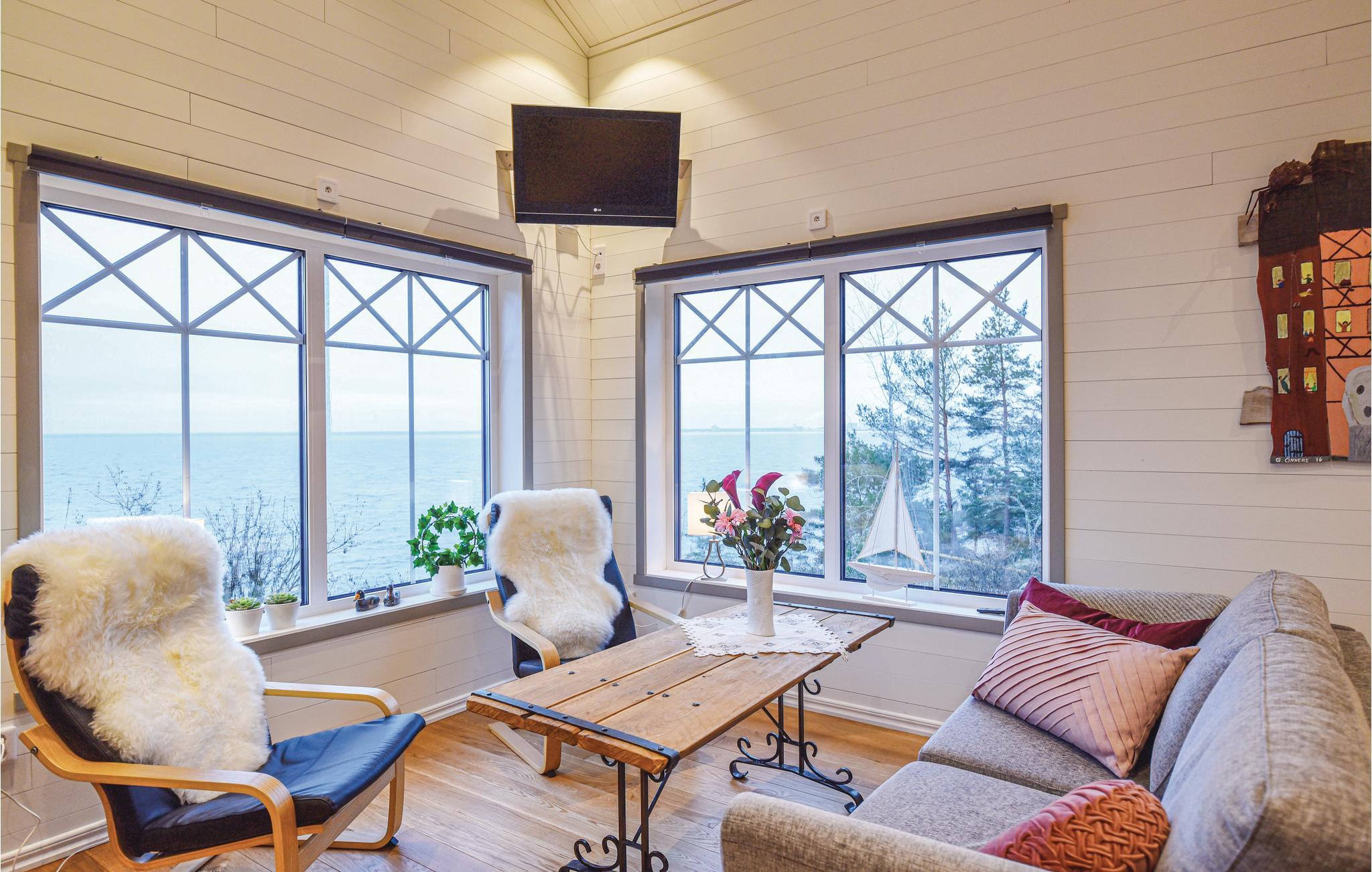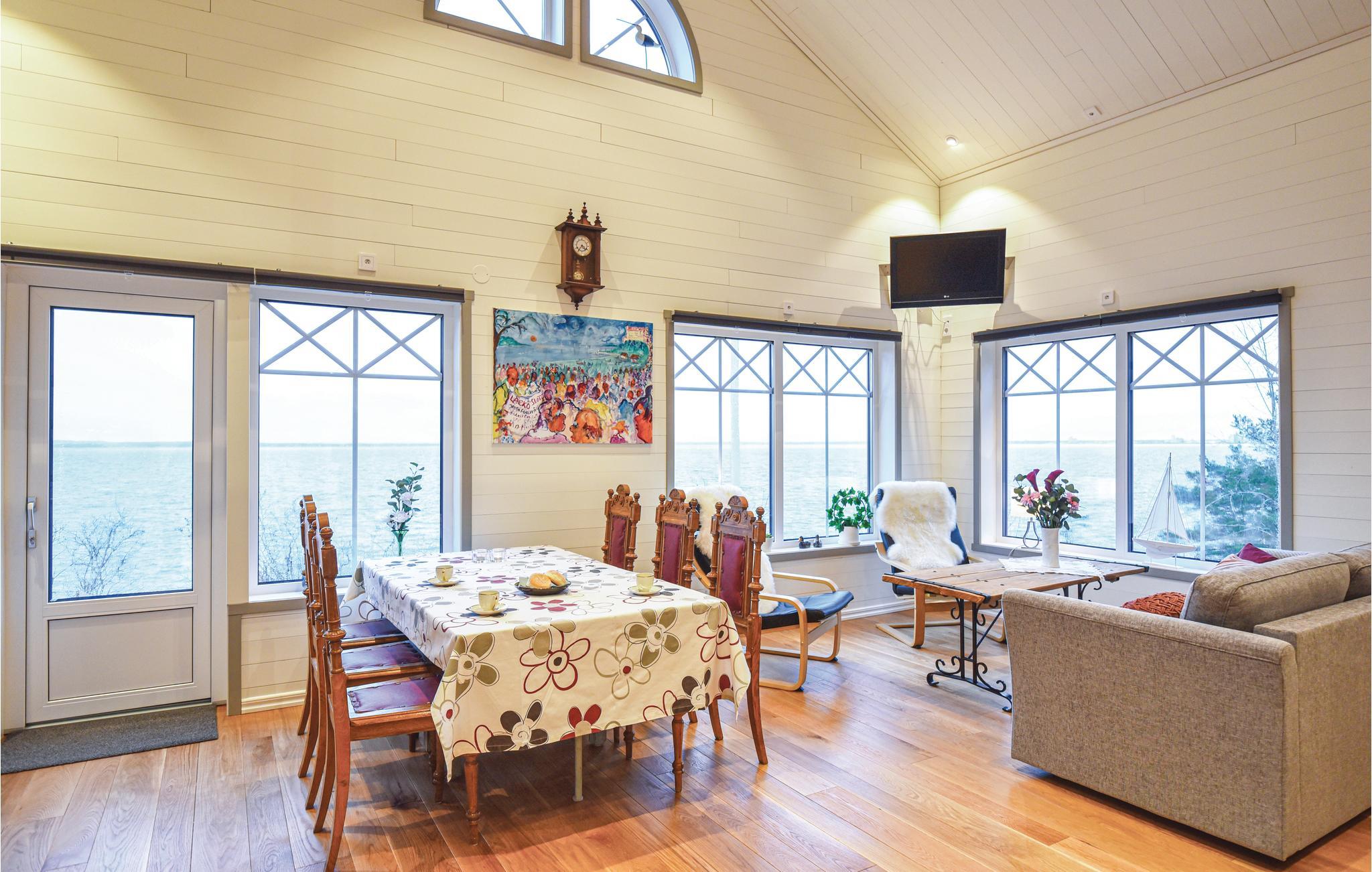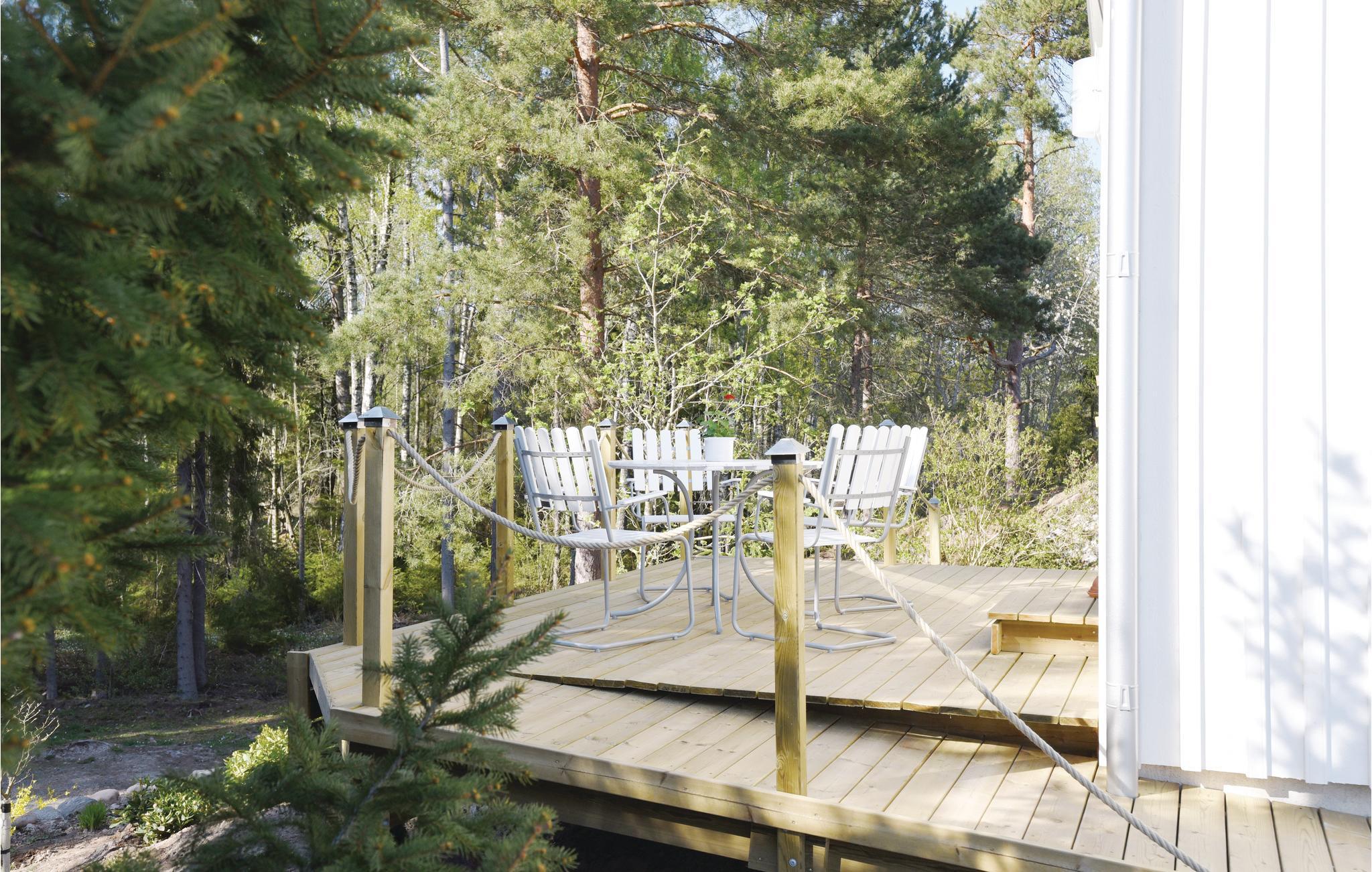 Tag familie eller venner med på en fantastisk ferie her, midt mellem skov, klipper og vand. Træd ind i det lyse og velindrettede køkkenalrum og lad roen sænke sig over jer. Her er højt til loftet og en smuk udsigt til vandet. Nyd morgenkaffen på terrassen, og lad jer indhylle i den storslåede natur omkring jer. Senere kan I samles og lækre grillmiddage og nyde de lyse sommeraftener, mens I venter på at stjernerne dukker op på himlen. Efter en aktiv dag vil det være oplagt med en tur i vildmarksbadet, hvor I kan nyde en kold forfriskning og udsigten over søen. Sten- og klippegrunden skråner mod søen.