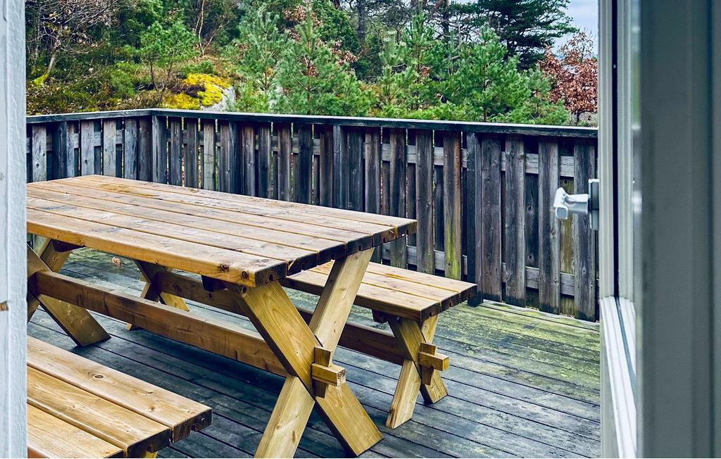 Træd ud på den rustikke træterrasse og fyld lungerne med den friske kystluft. slå jer ned i siddegruppen og nyd en pause med udsigt over vandet og den klippefyldte kystlinje. Den omkringliggende natur med træer og klipper tilbyder ro og lægger op til korte gåture. Benyt jer af den fælles sauna og de mange muligheder for en forfriskende dukkert i havet.