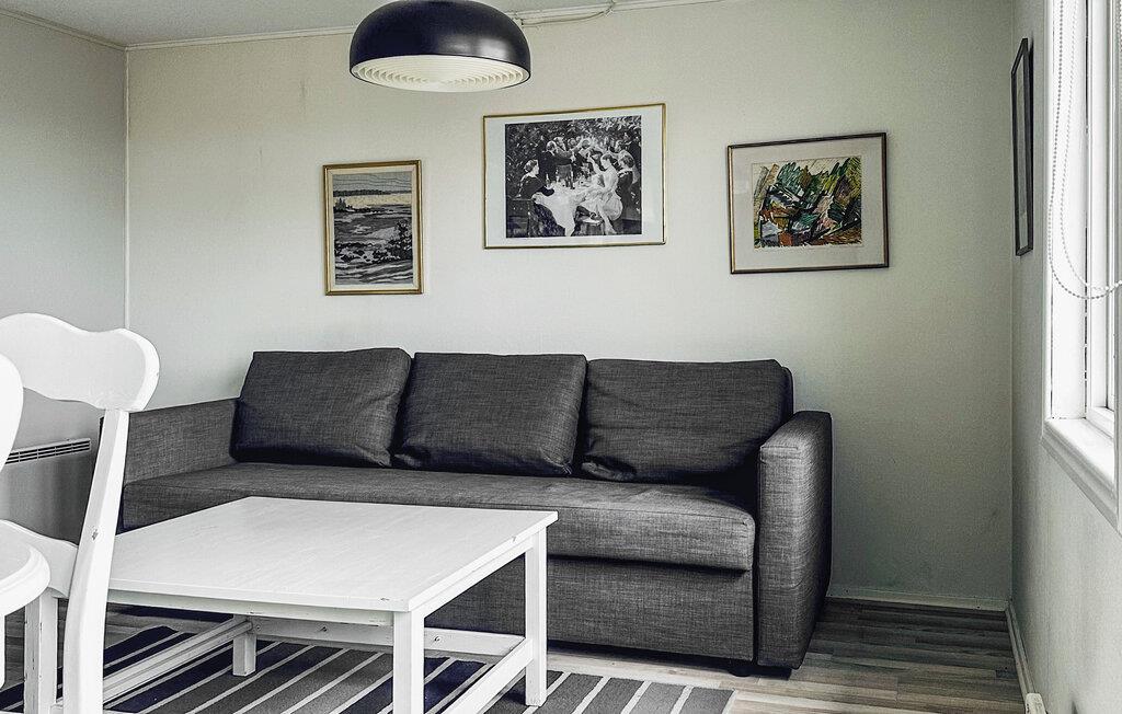 Gå ind i stuen og slå jer ned til rette i den komfortable sofa, mens det bløde lys filtreres gennem vinduerne. Den enkle indretning skaber en behagelig atmosfære. Tag plads ved det store spisebord ved vinduet og brug det til fælles måltider eller et afslappende spil. Tilbered jeres måltider med lethed i det funktionelle køkken. Fjernsynet sørger for underholdning, hvis I ønsker at slappe af om aftenen.