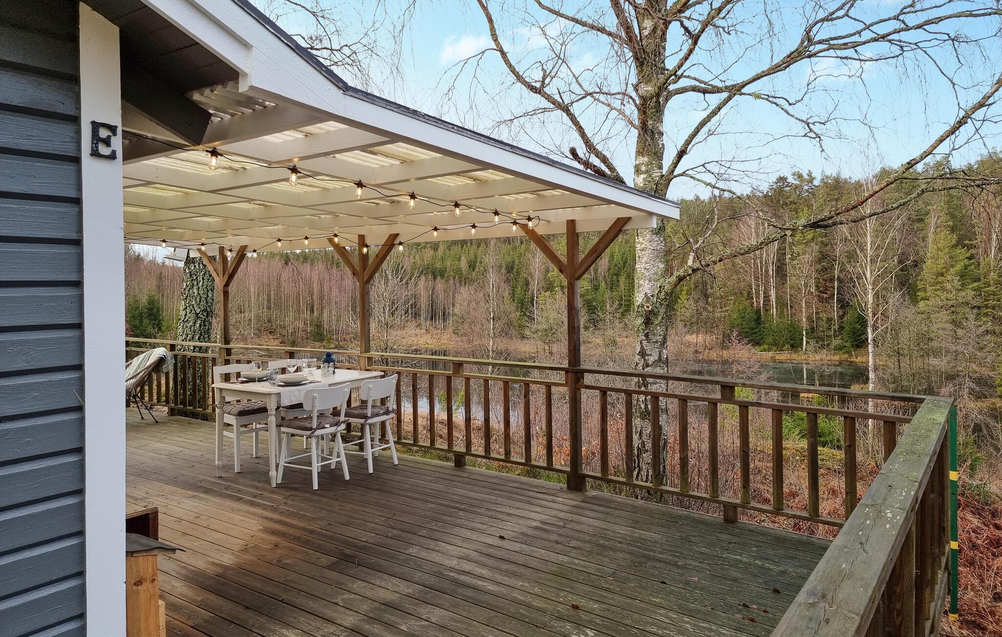 Beliggende direkte ved Ryrsjöns bred tilbyder dette charmerende feriehus jer de perfekte rammer for afslappende dage i naturen.