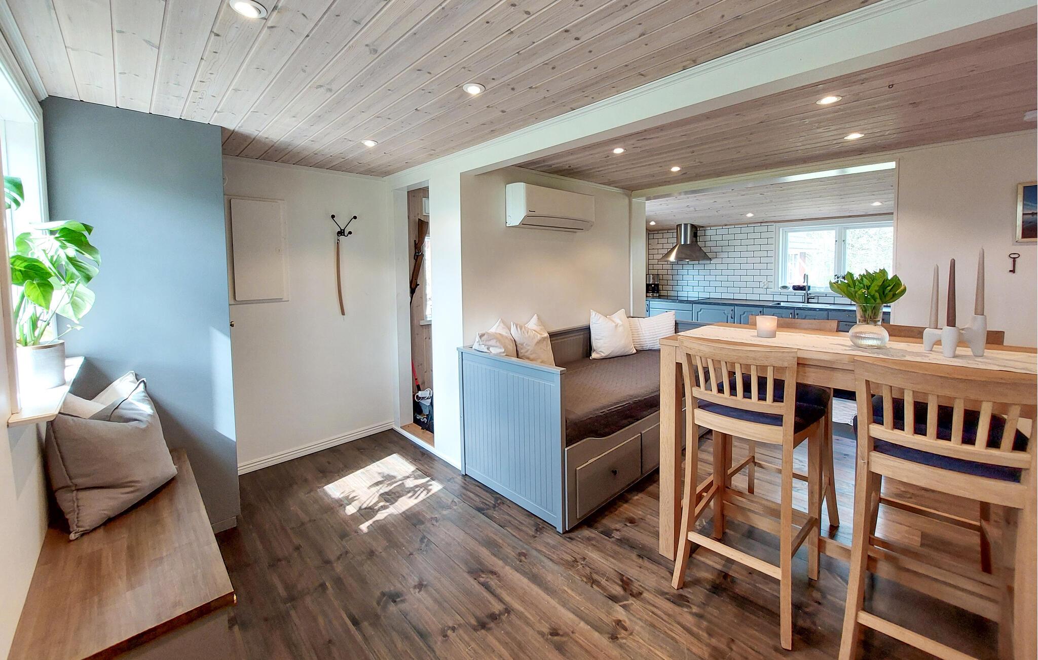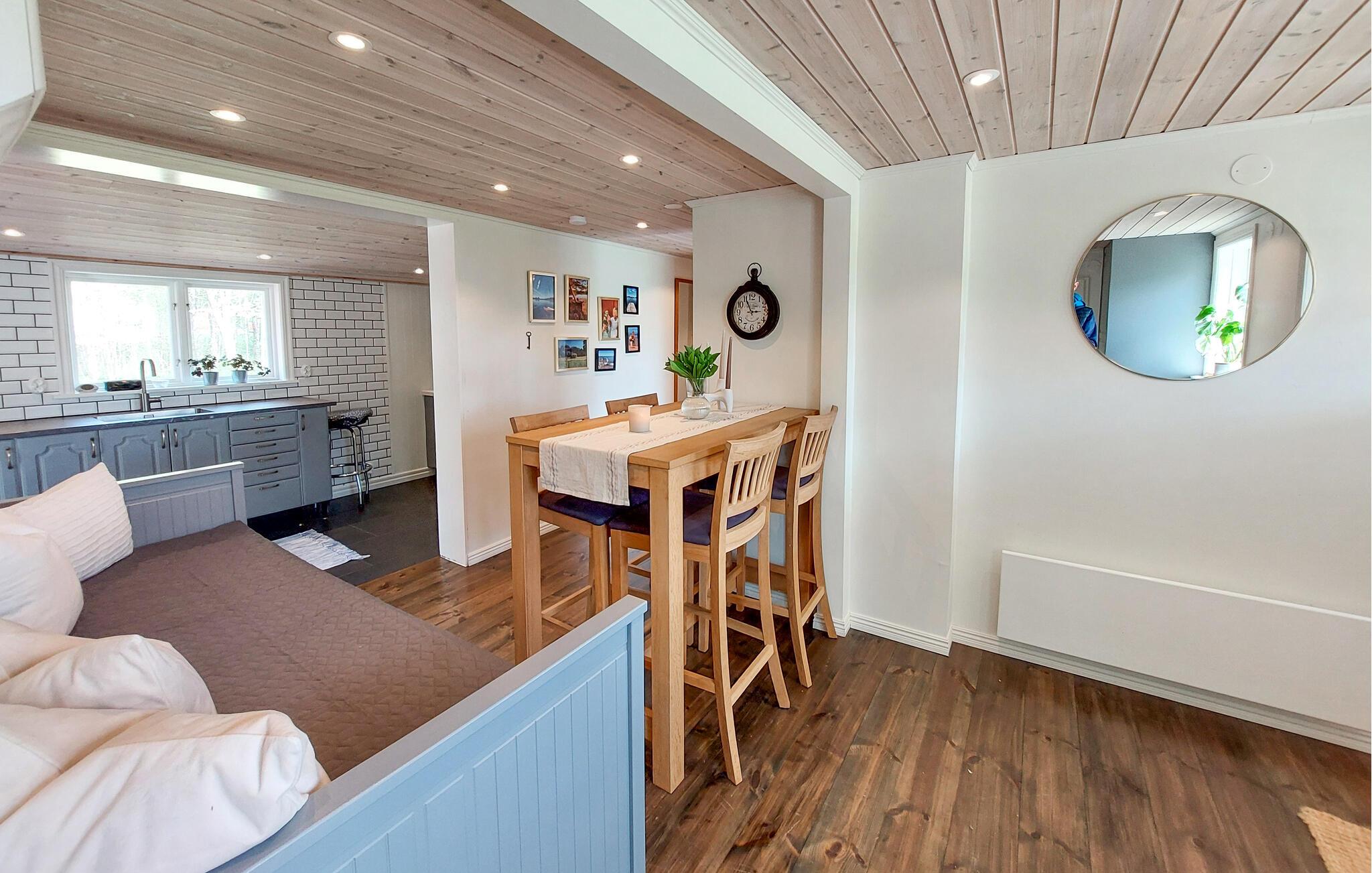 Dette smukt renoverede feriehus byder jer velkommen med moderne og smagfulde værelser, hvor charmen fra svundne tider skaber en hyggelig atmosfære. Huset har en vidunderlig beliggenhed, kun et stenkast fra Jällund-søen. Her bor I i rolige og idylliske omgivelser, perfekt til afslapning, svømning og udendørsaktiviteter.