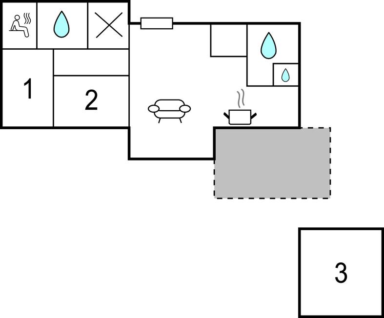 Opholdsstue/køkken - 2 Sovepladser. (Sofa, madras eller lignende).