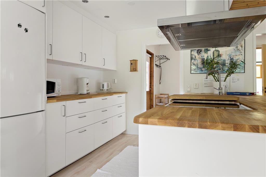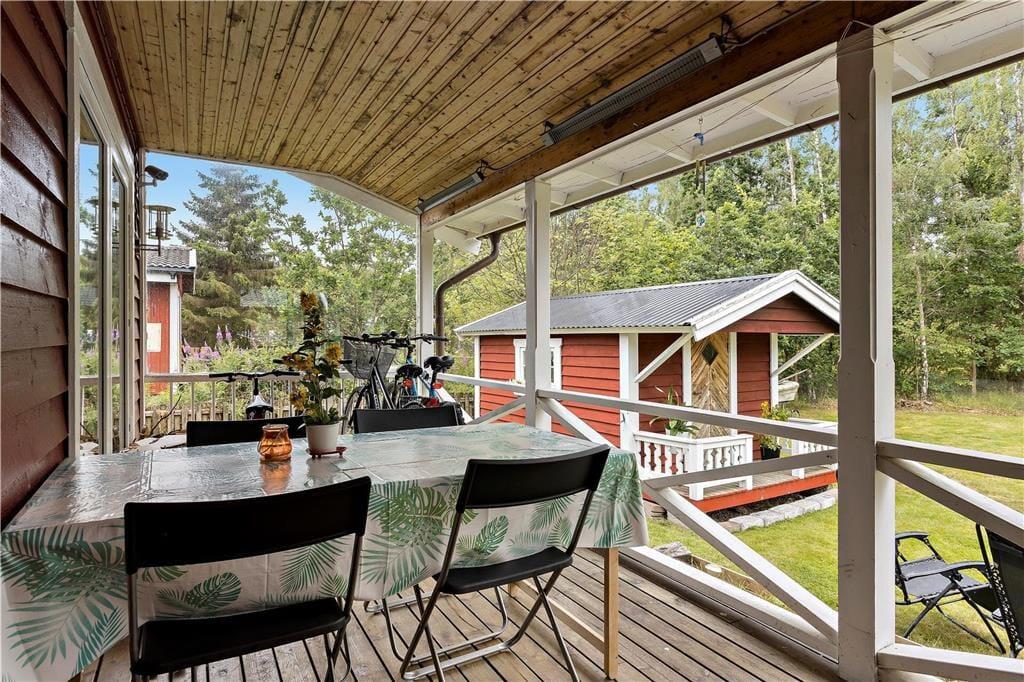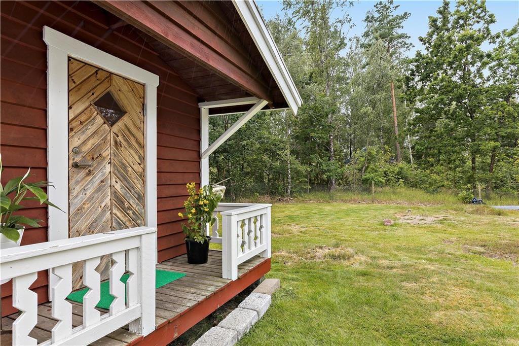 Sommerhus i Mönsterås, Sydsverige, med plads til 4 voksne. Der er en hyggelig indretning med bl.a. brændeovn, og du finder desuden vaskemaskine og opvaskemaskine i boligen.