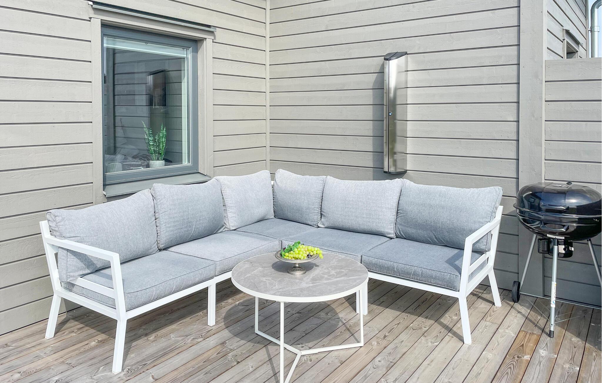 Tilbring hyggelige timer udendørs på de to terrasser eller i det glasindkapslede orangeri og nyd solen. Tag de få skridt ned til havet og hop fra den lange mole ned i det vidunderligt forfriskende vand. En vandresti venter jer lige uden for døren. Hvis I har lyst, kan I også spille discgolf i nærheden eller besøge nogle af grillområderne med udsigt i området.